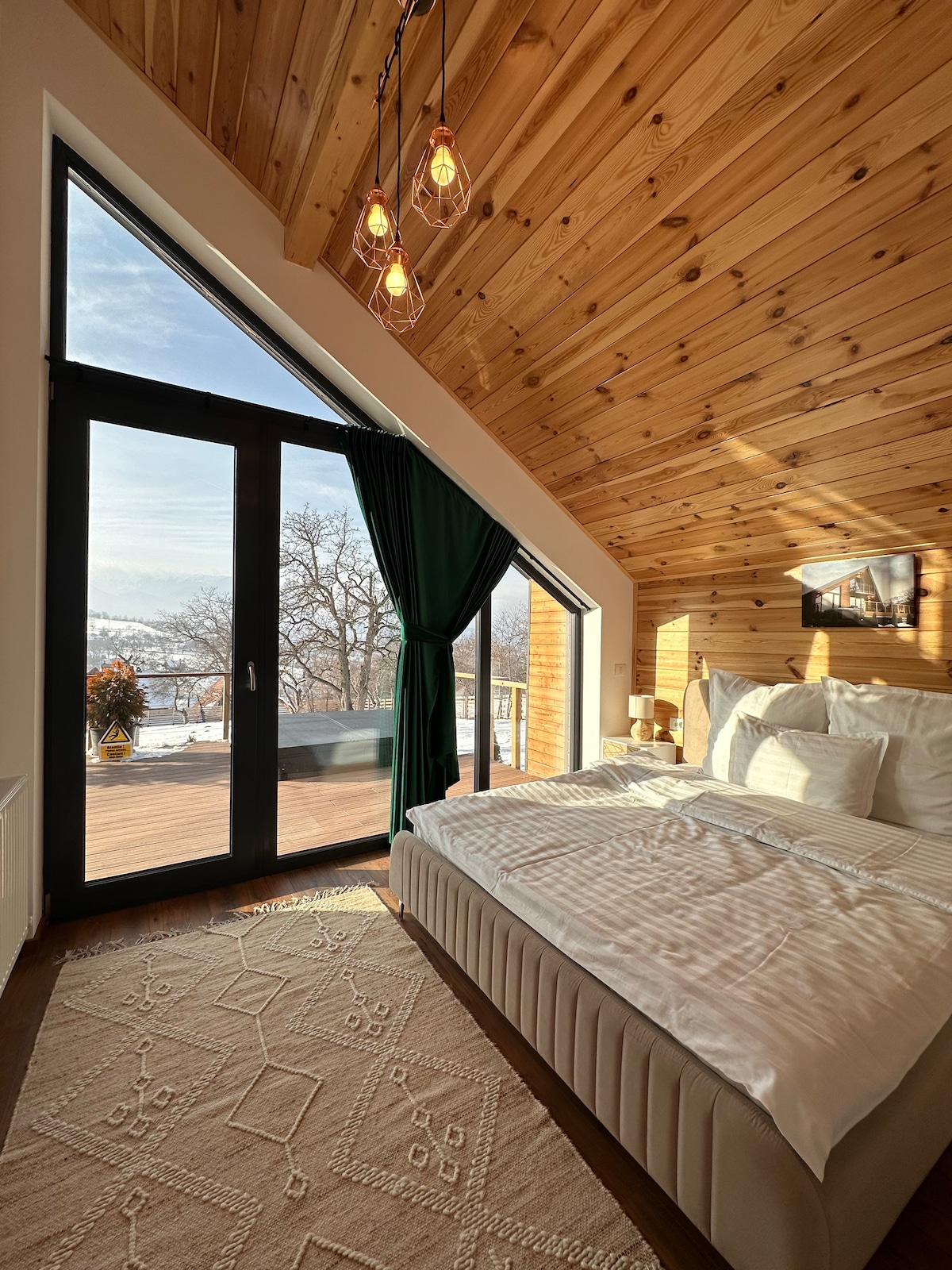 Ang aming bahay na may malalaking bintana ay magpaparamdam sa iyo na mas malapit ka sa kalikasan kahit na sa mga araw na ang lagay ng panahon ay nag-uudyok sa atin na manatili sa init. Nais naming lumikha ng isang kaaya-ayang lugar kung saan maaari kang gumugol ng oras kasama ang iyong pamilya o mga kaibigan, kaya ang Aztec Chalet ay naaayon sa mga alituntunin ng feng shui. Isang minuto lamang mula sa DN10 highway at 40 minuto mula sa Brasov, ang chalet ay madaling ma-access at malayo sa ingay ng lungsod.