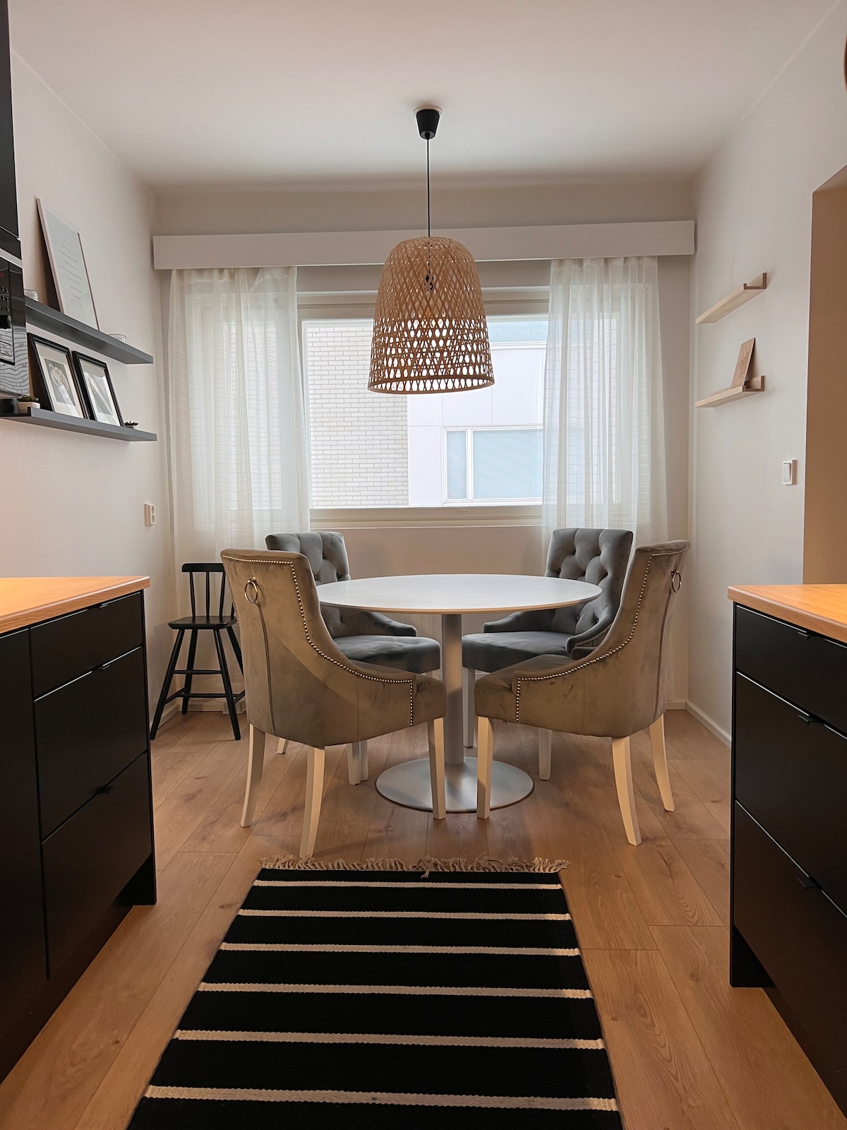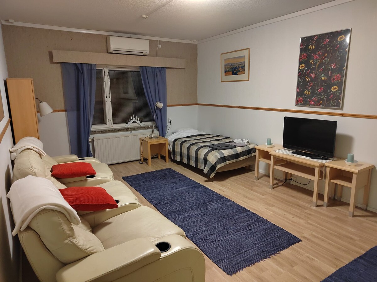 Mag - enjoy sa komportableng pamamalagi sa ikalawang palapag sa isang compact 45 m² na apartment sa sentro ng Seinäjoki. 500 metro lamang ang layo ng istasyon ng tren at 350 metro ang layo ng pinakamalapit na grocery store. Palaging naghihintay sa iyo ang mga linen at tuwalya at bahagi ito ng upa. Matutulog nang anim na oras: double bed, sofa bed, at malawak na air mattress. Ang apartment ay may cooling machine at ang silid - tulugan ay may mga nagpapadilim na kurtina ng bintana. Magkakaroon ka rin ng access sa libreng paradahan para sa isang kotse.