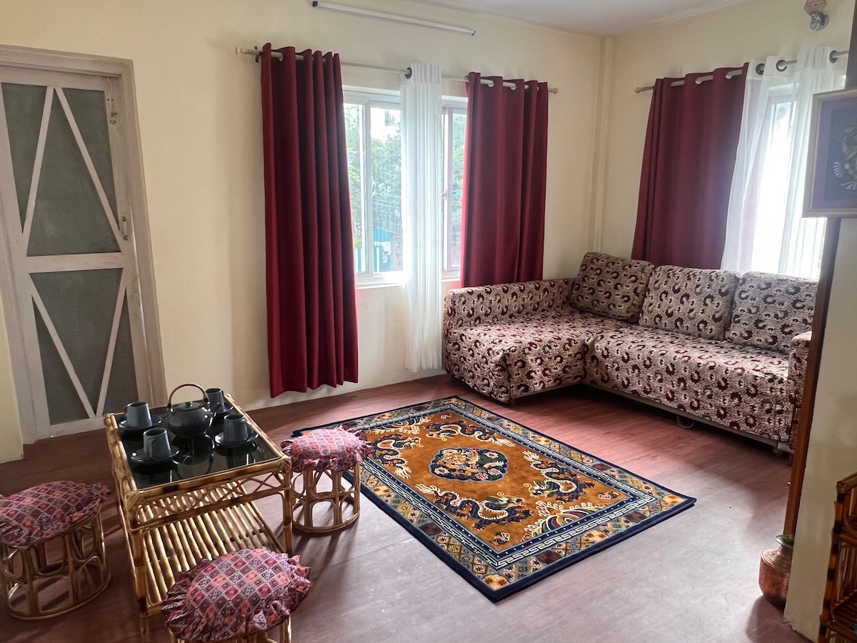 Namaste at maligayang pagdating. Ang mapayapang full - floor homestay na ito ay may pribadong pasukan at tanawin ng mga tuktok ng Jugal, Pubhi Gyanchu, at Gaurisankhar. Tradisyonal na estilo ng Nepali na may modernong kaginhawaan. Gawa sa kamay na dekorasyon at muwebles na may kuwento at lokal na pag - ibig. Handa na ang kusina gamit ang mga kagamitan sa pagluluto at masala. Tahimik na lugar, madaling maglakad papunta sa bus, mga tindahan, at cafe. Sa ating kultura, ang Atithi Devo Bhava - guest ay Diyos. Inihahanda namin ang lahat nang may pag - iingat, para maramdaman mong parang nasa bahay ka. Halika, mag - enjoy sa pagsikat ng araw sa bundok, lokal na tsaa, at mapayapang puso ng Nepal.