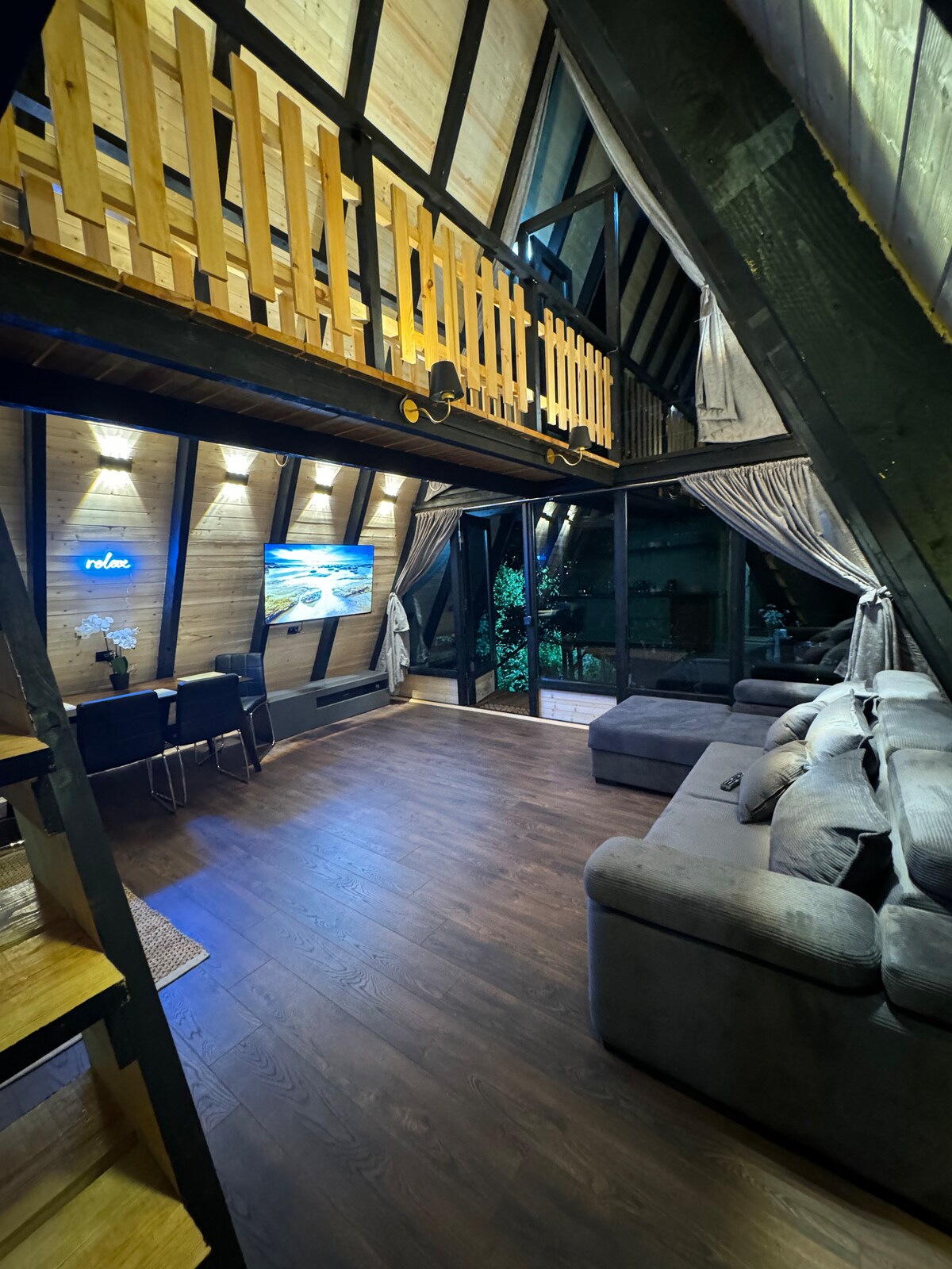 Kasama sa cottage Cottage na may ibabaw na 55 m². Ang ganap na na - renovate na chalet na ito, ay maaaring tumanggap ng hanggang 5 tao . Makikita mo ang lahat sa paligid ng malalaking lugar, ang moderno at cocoon interior nito ay mangayayat sa iyo. Matatagpuan sa gilid ng mga bundok at kagubatan, ang Loft chalet ay napakapopular sa mga mahilig sa kalikasan. Na - renovate, Puwedeng tumanggap ng hanggang 5 tao , mainam ito para sa isang pamilya o mag - asawa, mamalagi sa isang tahimik at berde at maaliwalas na kapaligiran. 15 minutong biyahe lang mula sa Bakuriani.