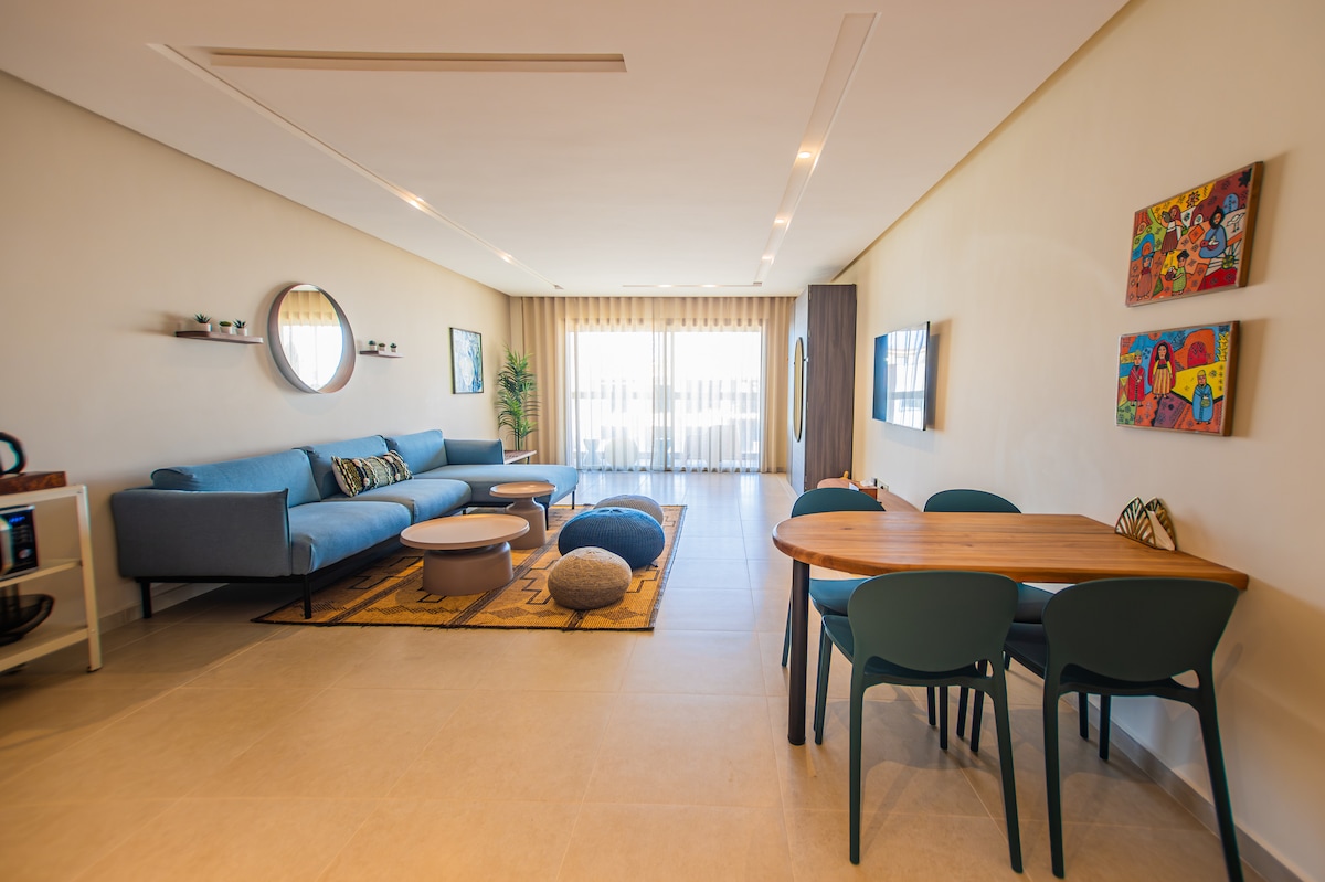 Tuklasin ang bago naming maliwanag na apartment sa Hay Mohammadi (Residence Islane), na perpekto para sa 4 na tao. May kasamang kuwarto, sala na may malaking sofa, 2 Smart TV, air conditioning, kusinang may kumpletong kagamitan, modernong banyo, at mabilis na wifi. Magagamit mo rin ang swimming pool ng tirahan para magrelaks. Malapit sa mga tindahan, transportasyon, at beach ng Agadir, perpekto ito para sa isang mapayapa at kaaya-ayang pamamalagi.
