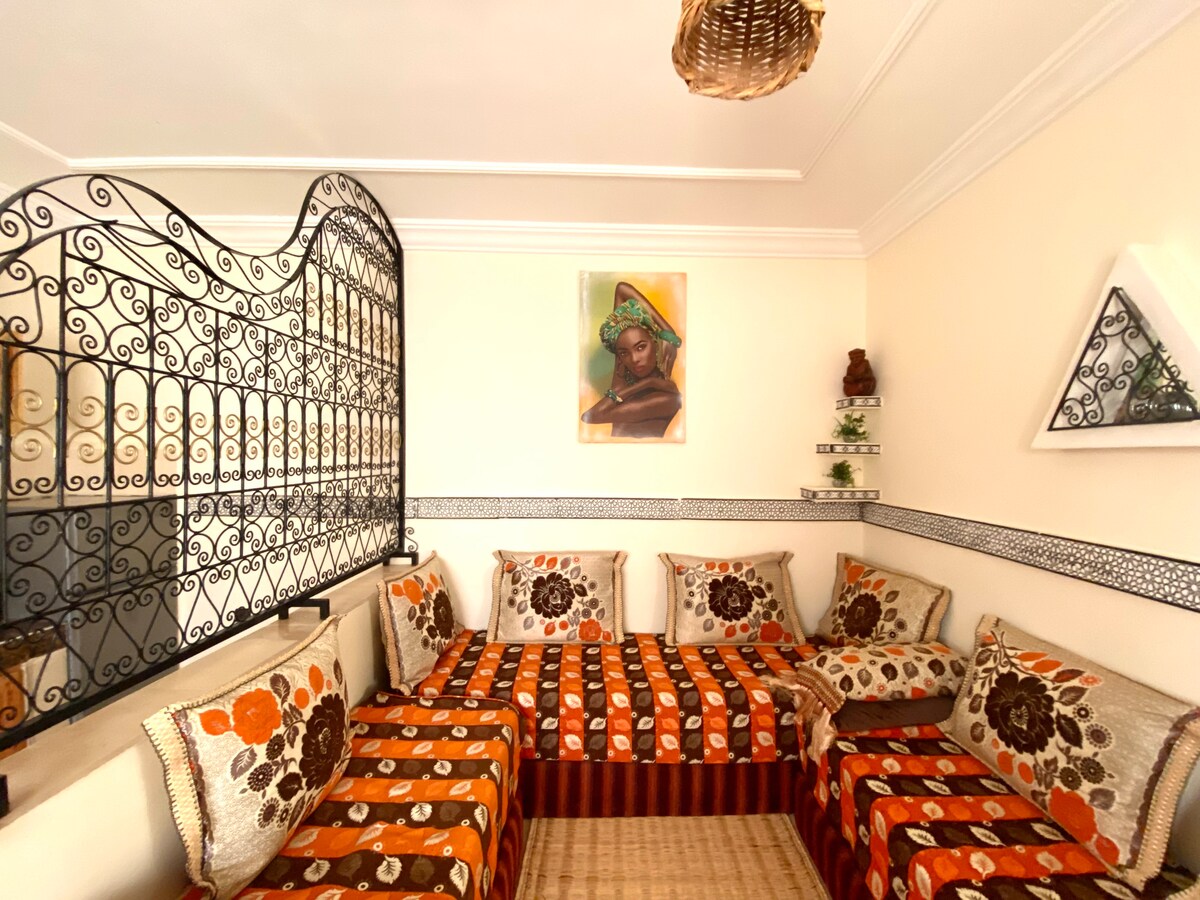 Nous sommes très ravis de vous offrir un appartement qui représente notre culture berbère avec un peu de modernité est une sensation de mille et une nuit Profitez d'un séjour inoubliable dans notre appartement et notre superbe Terasse avec une excellente vu à l’océan spécialement au coucher du soleil sur le spot de surf banana point est au montagnes de Tamraght.