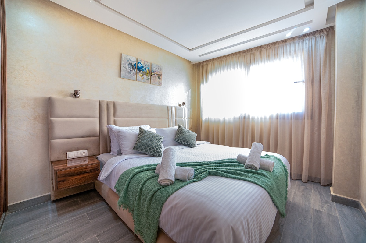 400 metro mula sa beach ng Taghazout, mag - enjoy sa komportableng 2 silid - tulugan na apartment na may mga tanawin ng dagat at hindi malilimutang paglubog ng araw. Tahimik at ligtas na tirahan, mainam para sa pagrerelaks pagkatapos ng isang araw ng surfing o hiking. Maliwanag na interior na may kumpletong kusina, mabilis na fiber optic wifi at komportableng sala. Mga karaniwang cafe at restawran sa paligid. Ang perpektong lugar para tikman ang diwa ng karagatan at ang katamisan ng Moroccan.