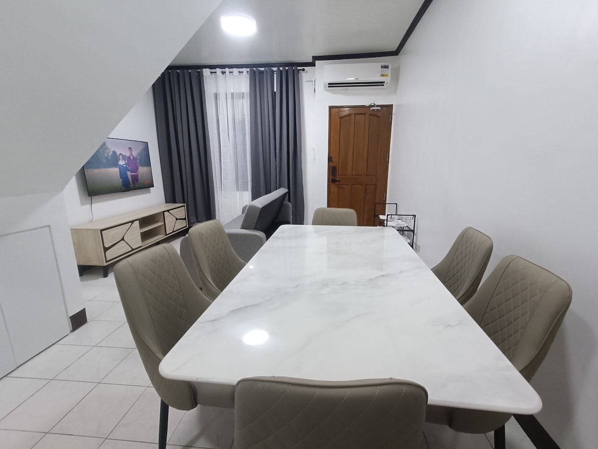 Enjoy our condo unit perfect for couples, family and groups, fully furnished with lots of exciting things to do! Amenities: ✔️100inches projector with unlimited Netflix & Youtube Premium ✔️PS4 ✔️Smart TV with Prime Video ✔️Billiard table ✔️1 wired mic for karaoke ✔️Acoustic Guitar ✔️Fast Wifi ✔️Board and card games ✔️Cooking and kitchen utensils ✔️Ref, rice cooker, electric kettle and induction stove ✔️Beer tower & roulette ✔️Bed, extra matresses, sofa bed ✔️Swimming pool And many more