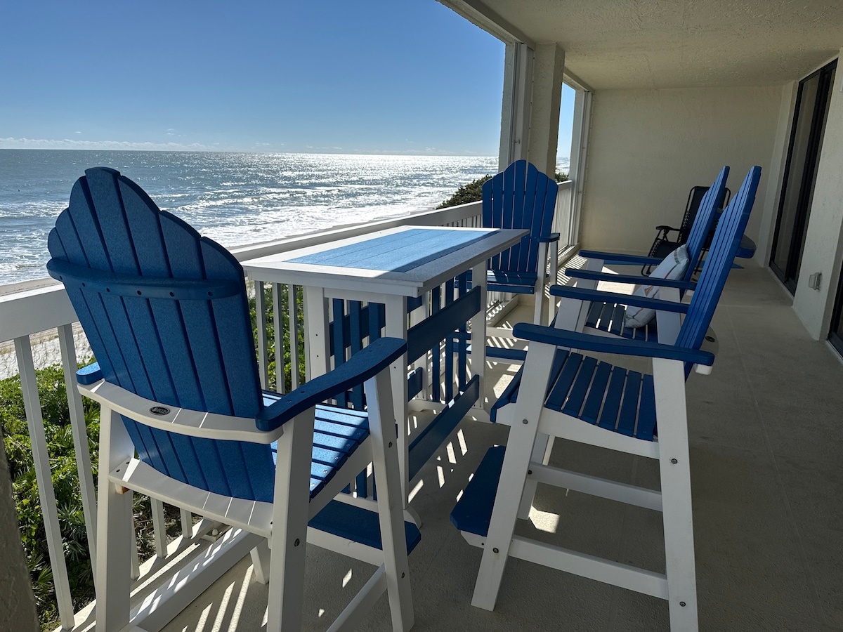 1 silid - tulugan 2nd story garahe apartment na tinatanaw ang Atlantic Ocean. Dalawang bisita lang. Pribadong beach access sa property na may pribadong paradahan. Tahimik ang property kasama ng mga host na nakatira sa hiwalay na gusali. Maikling lakad papunta sa grocery store. Ang air conditioned/heated apartment ay may kusinang kumpleto sa kagamitan, isang silid - tulugan na may queen bed. Matatagpuan kami sa loob ng isang wildlife na nangangalaga sa 4 na milya sa timog ng makasaysayang Melbourne Beach at 9 na milya sa hilaga ng Sebastian Inlet State Park. 12% buwis ng turista ng County at Estado.