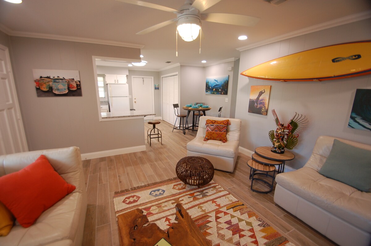 Isang karanasan at natatangi ang Island Cave. Hindi tradisyonal May sliding door ang banyo May window AC ang unit Hindi inirerekomenda para sa mga matatanda o Bisita na may mga limitasyon maliit na espasyo Queen size na higaan Pribadong unit sa likod ng 2 palapag na bahay na itinayo noong 1930s na angkop para sa solo o magkasintahan. (Hindi inirerekomenda para sa pangmatagalang Walang kasamang bata o sanggol 5 pang unit sa property Nasa sentro, 5 milya ang layo sa Cocoa Beach, 1.5 milya ang layo sa Cocoa Village, at malapit sa mga kainan at tindahan Malapit sa mga pangunahing kalsada na may posibilidad ng ingay