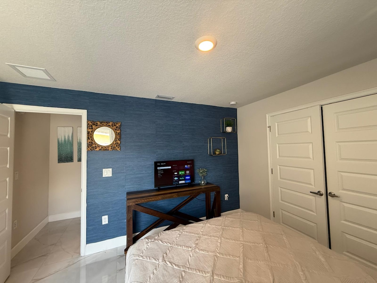 Maging komportable sa aming ganap na pribadong apartment, sa isang tahimik na kapitbahayan na may lahat ng kailangan mo para sa isang nakakarelaks na pamamalagi. Magrelaks nang komportable sa maluwang na King bed at komportableng queen sofa bed na nagbibigay ng sapat na espasyo para sa mga karagdagang bisita. Bagong idinagdag na washer at dryer sa loob ng unit para sa mabilis na paghuhugas. Sa pamamagitan ng sarili nitong pribadong pasukan, at ligtas at libreng paradahan, masisiyahan ka sa kalayaan na pumunta at pumunta ayon sa gusto mo. Manatiling konektado sa libreng high - speed na WiFi, at mga smart tv sa kuwarto at sala.