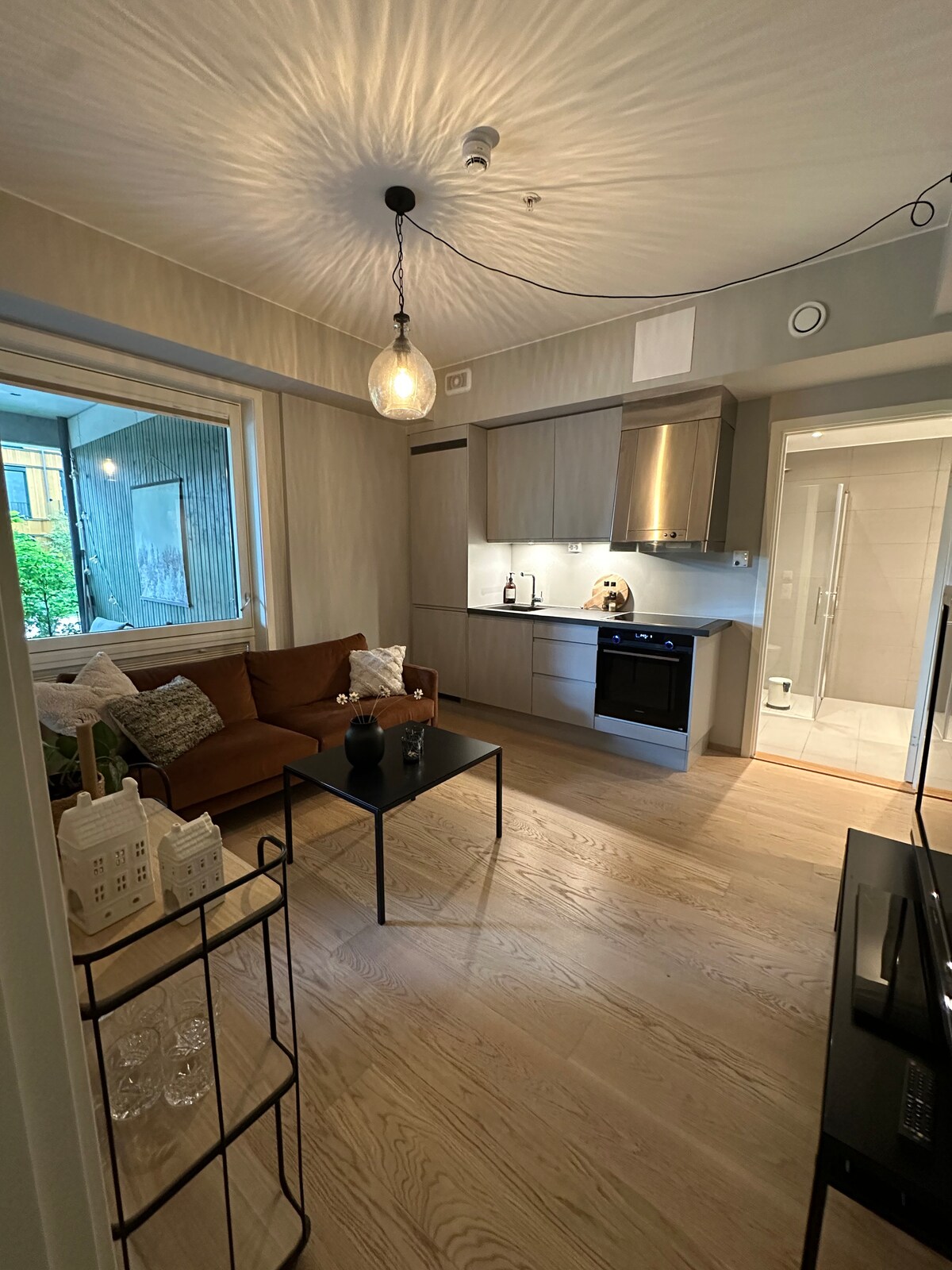 Madaling ma - access ang tuluyan para sa mga maikli o mas matagal na panahon. Matatagpuan ang apartment sa hiwalay na gusali na may pasukan mula sa ground floor at may veranda/pasilyo, sala na may kusina, banyo, at tulugan. May oven, hob, microwave, refrigerator, coffee machine, at dishwasher sa kusina. Nilagyan ng crockery, kubyertos at kagamitan para sa simpleng pagluluto. Ang banyo ay may toilet, lababo at shower cabinet at washing machine. Silid - tulugan sa loft (120 cm), double sofa bed (140 cm) at upuan sa pagtulog (75 cm). WiFi 55" TV na may chrome cast.