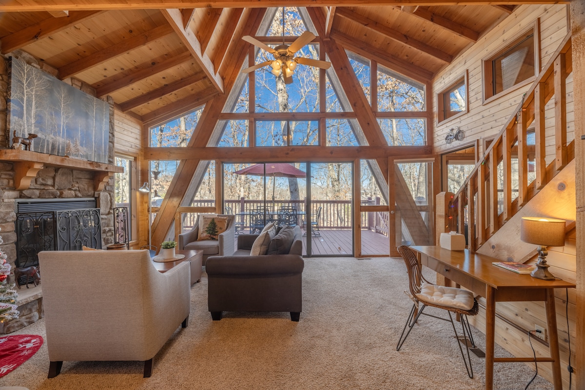 Mamalagi sa "Redbird Cabin" sa aming tabing - lawa na 3 silid - tulugan A - frame na tuluyan sa mismong tubig na may magagandang tanawin ng lawa mula sa family room. Marami kaming lugar para sa mga pamilya at kaibigan na mayroon ng lahat ng kailangan mo para ma - enjoy ang iyong retreat. Dahil sa aming napakalaking lugar sa labas, magiging magandang lugar ito para mag - BBQ, magrelaks, at umupo sa tabi ng sigaan. Matatagpuan sa isang gated na komunidad sa loob ng Innsbrook resort (isang oras mula sa STL), magugustuhan mo ang pana - panahong pool ng komunidad, restawran, golf course, gym, palaruan, at hiking trail!
