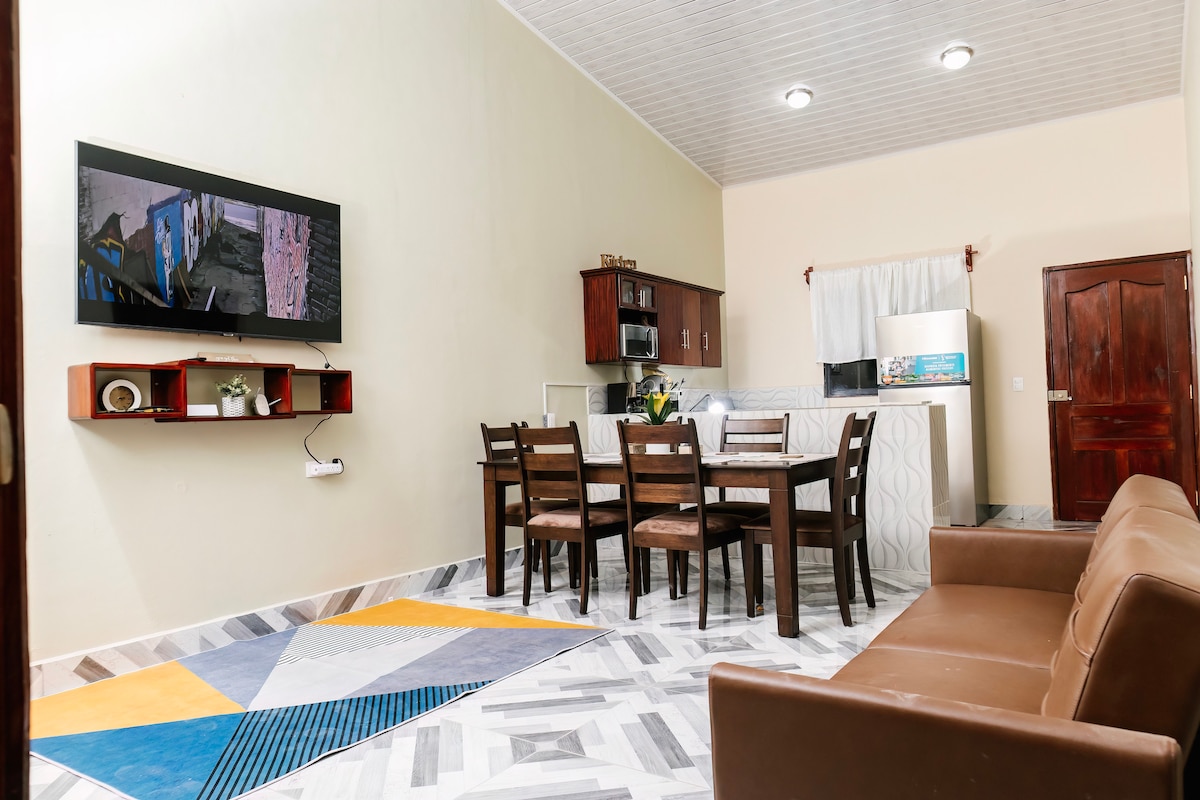 Ang komportableng pribadong apartment na ito ay may dalawang queen - size na higaan na perpekto para sa pahinga. Nag - aalok ito ng moderno at functional na kapaligiran, na perpekto para sa mga executive o biyahero. Nilagyan ang kusina ng lahat ng pangunahing kailangan para ihanda ang iyong mga pagkain, at ginagarantiyahan ka ng pribadong banyo ng privacy at kaginhawaan. Masiyahan sa mabilis na WiFi, TV para sa libangan, at isang sentral na lokasyon na magbibigay - daan sa iyo upang madaling lumipat sa loob ng 1 km mula sa sentro. Isang perpektong lugar para makapagpahinga at maging komportable!