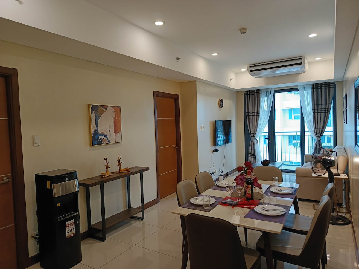 Malapit sa lahat ang iyong pamilya/mga kaibigan kapag namalagi ka sa lugar na ito na may gitnang lokasyon. Ilang minuto lang ang layo ng maigsing distansya papunta sa mga kalapit na tourist spot at mall. 😊 Gustong - gusto ng bisita ang ambiance at tanawin ng unit habang nakaupo ito sa kanto ng gusali. Magandang tanawin ng Tagaytay Park at Golden Sunsets ng Maynila. Maaari kang magkaroon ng kape o hapunan sa balkonahe para sa isang mas mahusay na tanawin at matalik na pakiramdam 🌅💛🇵🇭 Ang lugar ay may NETFLIX at maraming BOARDGAMES para sa iyo at sa iyong pamilya 🎮♟️🎯🎳