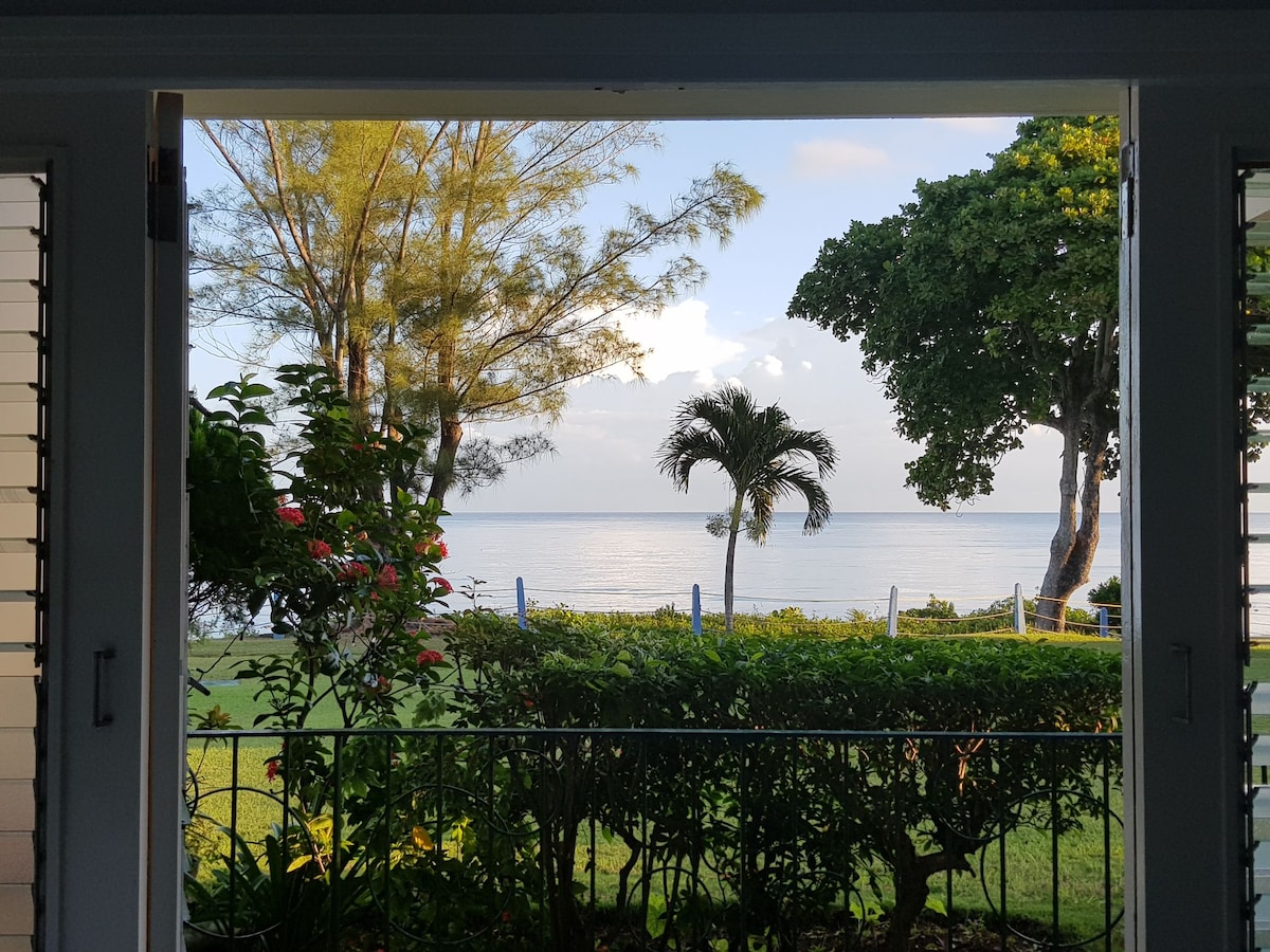 We are fully operational post Hurricane Melissa with power, water & wifi Unwind at this stunning ocean-view studio only 5 minutes away from the heart of Ocho Rios. The studio is freshly renovated with granite counter tops in the kitchen and bathroom, and porcelain tile throughout for a luxurious yet homey feel. Enjoy the vast ocean view and dip your toes in the water only a few steps out from the patio. This studio is the perfect place for relaxing, listening to the ocean and enjoying the breeze
