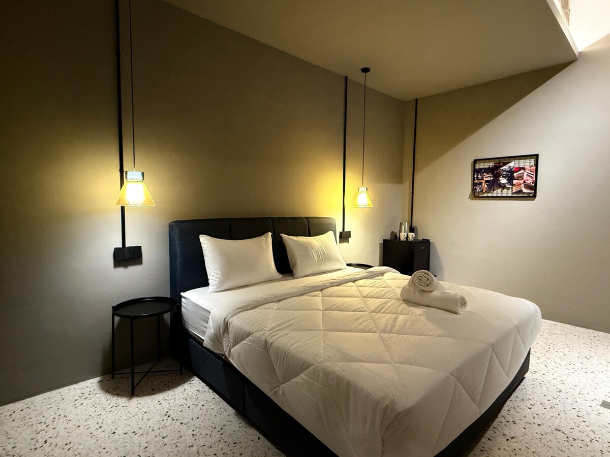 IPOH CONCRETE VILLA精品民宿采用新旧结合的建筑形式,最令人惊叹的是震撼人心的建筑风格,采用重度工业风设计包括酷感十足的黑白元素、朴实无华的水泥墙/地面、自然粗野的裸砖墙、具有年代感的皮质沙发、粗犷冷峻的铁艺制品、暴露在外的各种走线管、二手粗糙木材、复古家具等等,在这里,房客们可以享受美妙无比的住宿经验,总共可容纳12人,非常适合想要在山城怡保共度难忘假期的大家庭或团体。