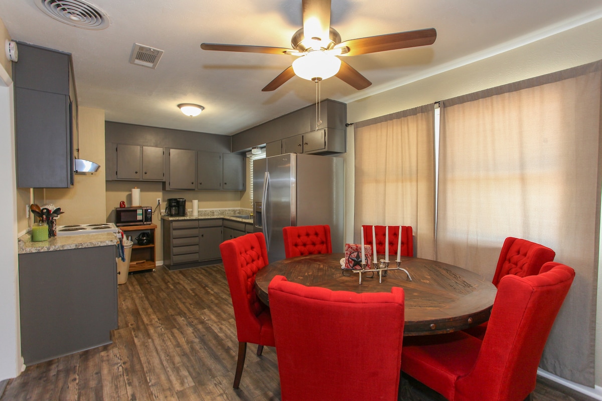 Maganda 1930s bahay na na - update na may mga nods sa nakaraan. May kasamang keyless entry, mga komportableng higaan\linen, kusinang kumpleto sa kagamitan, 65 pulgada at 50 pulgadang TV, sunroom, labahan, outdoor space at covered parking. Ang Garden Cottage ay nasa isang kapitbahayan na matatagpuan sa gitna ng Snyder. Ihahanda ka ng aming mga matutuluyan para sa susunod mong biyahe pabalik sa Snyder.