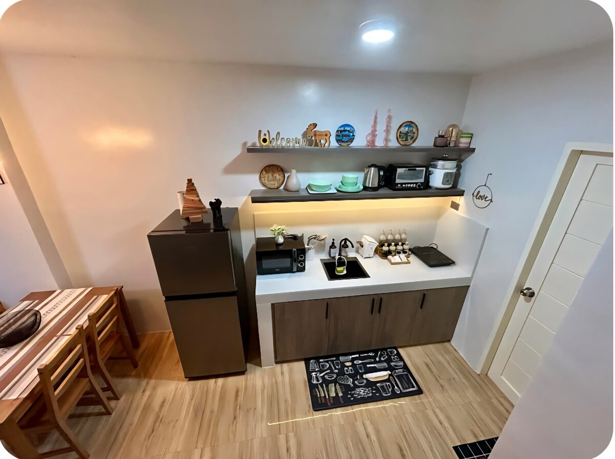 Bumalik at magrelaks sa kalmado at naka - istilong tuluyan na ito...isang studio room na matatagpuan sa isang mapayapang kapitbahayan sa Naga City. Mga 10 min na biyahe papunta sa SM at Robinsons Mall at 3 minutong biyahe lang papunta sa Vista Mall kung saan makakahanap ka ng pinakamagagandang restaurant at cafe. Mayroon kaming libreng paradahan sa lugar. Mayroon din kaming libreng Wifi & Netflix, komportableng kama, cool na AC, bagong - bago at may kumpletong pribadong kusina at malinis na banyo na may pampainit ng tubig.