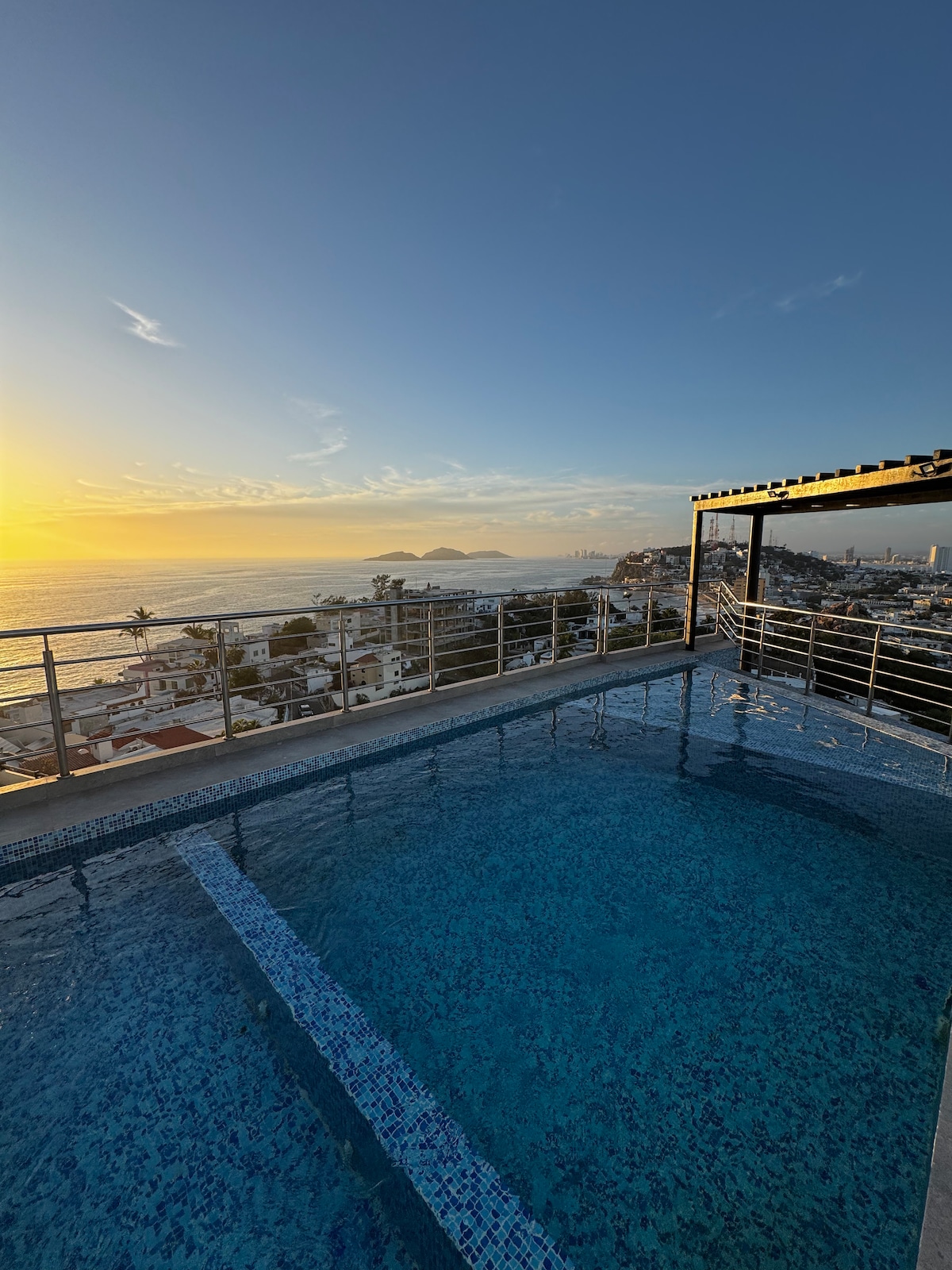 Magpahinga sa magandang lugar namin na ilang block lang ang layo sa magandang boardwalk ng Olas Altas at ilang minuto lang ang layo sa makasaysayang sentro, Plazuela Machado, Pino Suarez Market, at Agela Peralta Theater na itinayo noong 1874. Ilang minuto kami mula sa natural na pinakamataas sa buong mundo, ang 1873 Observatory, ang Ballena Museum at napapalibutan kami ng mga bar, restawran, cafe kung saan masisiyahan ka sa magagandang paglubog ng araw. Magrelaks sa infinity pool na may malawak na tanawin ng lumang Mazatlan.