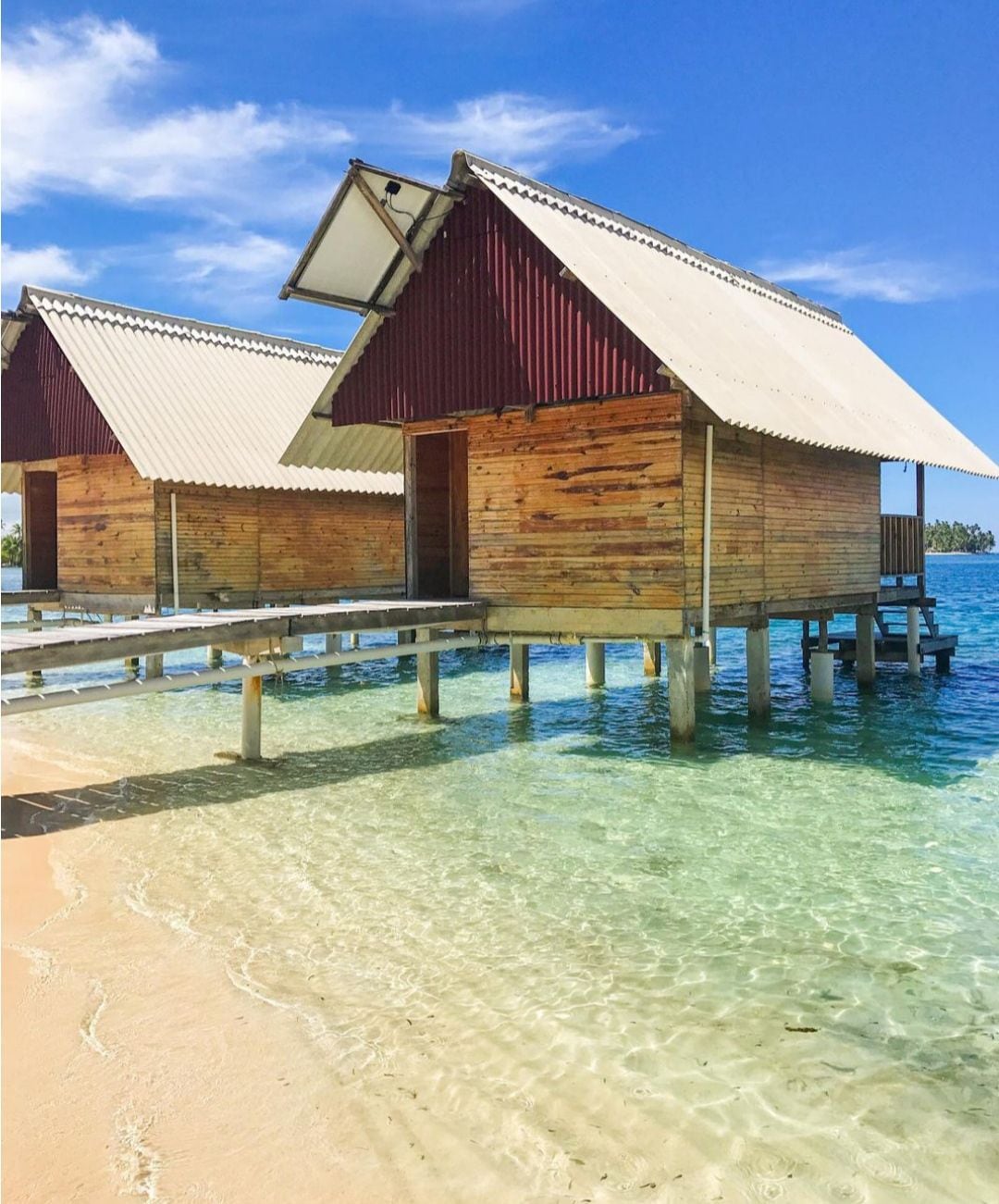 Cabañas sobre el mar en las islas de Guna Yala Que incluye la cabaña: 1 día: Almuerzo y cena 2 día: Desayuno Cabaña completamente de madera con una hamaca en su balcón y tiene 1 a 2 camas Capacidad para 1 sola persona y 4 personas. !!Antes de reservar debe de consultar con nosotros si hay disponibilidad en la cabaña!! !!Transporte no incluído!!