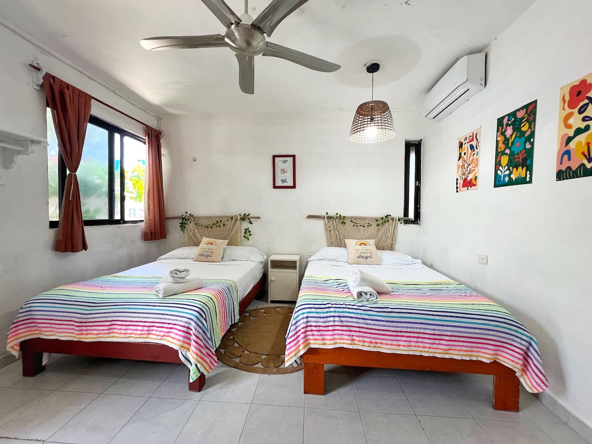 Napakalinaw at nakakarelaks na lugar sa timog dulo ng isla na may magandang tanawin ng karagatan sa Caribbean at pinakamagandang paglubog ng araw. May mga metro kami mula sa dagat, sa tabi ng hindi kapani - paniwalang coral reef kung saan puwede kang mag - snorkel at mag - enjoy sa kahanga - hangang mundo sa ilalim ng dagat (beach club). Para sa iyong kaginhawaan, mayroon kaming available na kagamitan sa snorkeling para sa iyo. Ilang metro mula sa Punta Sur ang templo ng Mayan ng diyosa na si Ixchel, kung saan pinag - iisipan mo ang mga nakamamanghang pagsikat ng araw at tinatamasa mo ang magagandang tanawin.