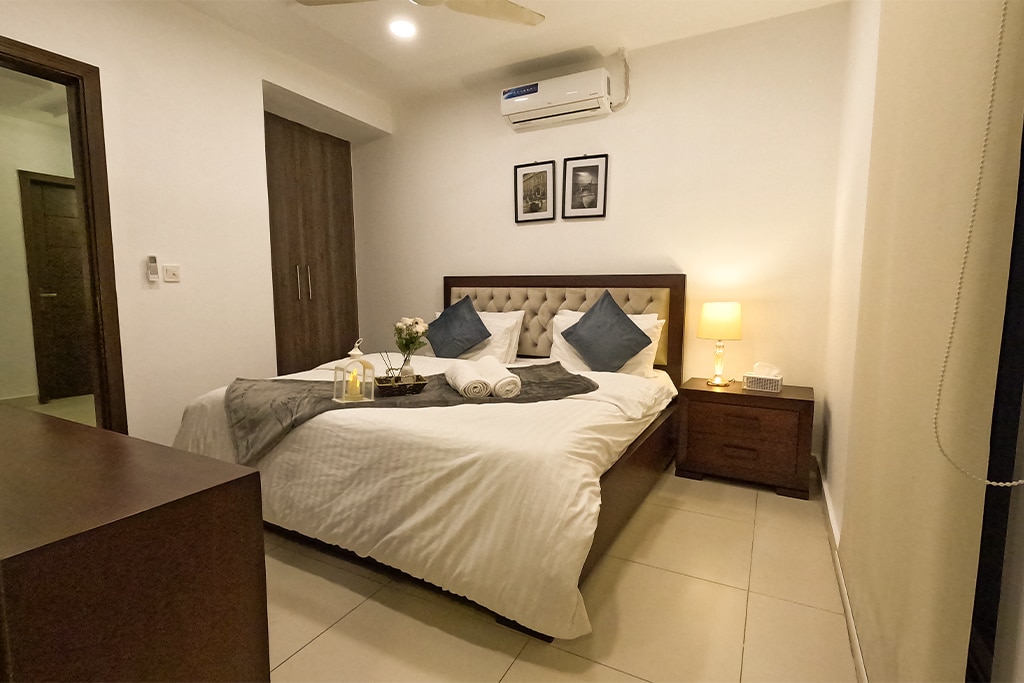 Pumasok sa Flamingo Grand 3 bedroom apartment, ang pinaka - sopistikadong at aesthetically kapana - panabik na mga service apartment sa Islamabad. Mag - enjoy sa ligtas, ligtas at naka - istilong karanasan sa lugar na ito na may gitnang lokasyon. Bumibisita ka man sa Islamabad para sa kasiyahan o para sa trabaho, tinitiyak namin sa flamingo na bigyan ka ng 5 - star na karanasan. Masisiyahan din ang mga bisita sa nakalaang libre at ligtas na paradahan, libreng wifi, at karanasan sa pagtingin sa kanilang paboritong serye sa tv sa 65 inch smart LED.