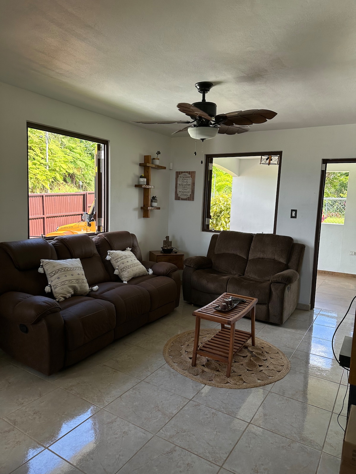 Sa minimalist na lugar na ito sa mga marilag na bundok ng Orocovis, Puerto Rico, matutuklasan mo ang isang tunay na gawain ng brutalismo. Dalawang simple at functional na silid - tulugan, modernong banyo, kusinang kumpleto sa kagamitan at sala na may TV at de - kuryenteng fireplace ang naghihintay. Sa pamamagitan ng malalaking bintana, maaari mong matanaw ang malalawak na tanawin ng lugar na ito, ang mga bundok, ang tunay na piraso ng sining. Tumatanggap kami ng mga gabay na hayop 🦮Pakisumite ang dokumentasyon kapag kinukumpirma ang reserbasyon.