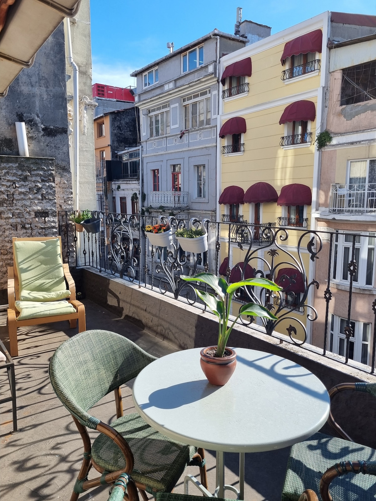 Ang pribadong terrace floor na ito ay angkop para sa mga panandaliang pamamalagi ng mga bisita at mag - asawa at matatagpuan ito sa ika -4 na palapag ng aming apartment sa isang medyo ligtas na kalye sa Beyoglu/Taksim. Maaabot ito gamit ang elevator hanggang sa ika -3 palapag. Ilang hakbang ang layo namin mula sa pangunahing Istiklal Street na napapalibutan ng makasaysayang kapaligiran ng mga lokal na atraksyon, at 10 minuto lang ang layo mula sa sikat na Galata Port Istanbul sa pamamagitan ng paglalakad. 100MBPS ang bilis ng Wi‑Fi at fiber modem ang gamit sa apartment kaya stable ang koneksyon para sa mga digital nomad!