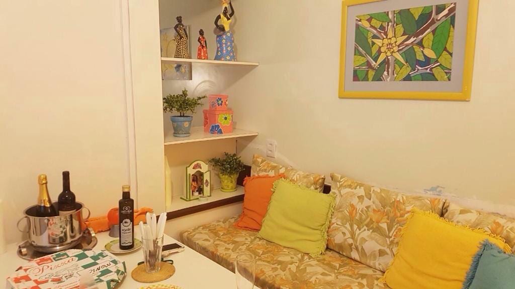 Sa harap ng pinakamagagandang cabin ng Ilhéus, nasa Condominium 150m ang apartment mula sa Millionaires Beach (South Zone) at may palaruan, game room, gym, at swimming pool. Nasa 3rd floor ang apto at may hanggang 5 tao sa 2/4 na may mga higaan at naka - air condition. Ang komportable at functional na lugar ay may kusina na may mga kagamitan, service area, sala at balkonahe. Bukod pa rito, mayroon itong Wi - Fi, 2 banyo, safety net, at eksklusibong garahe.