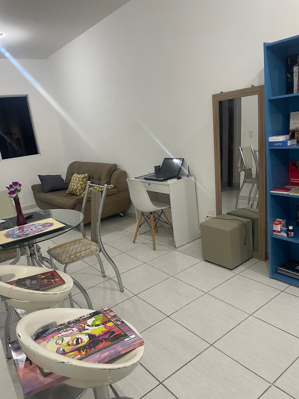 Yakapin ang pagiging simple sa tahimik at maayos na lugar na ito. Matatagpuan ang property sa isang ligtas at tahimik na condominium na may sapat na natural na liwanag sa buong araw. Ang apartment ay may: • 1 buong kuwarto; • 1 dagdag na kuwarto na magagamit nang libre; • Buong banyo; • Kusinang may kalan, refrigerator, granite countertop, at mga kabinet; • Lugar ng serbisyo na may washing machine at lubid ng labada; • Kuwartong may mesa at apat na upuan (angkop at praktikal para sa kainan o trabaho).