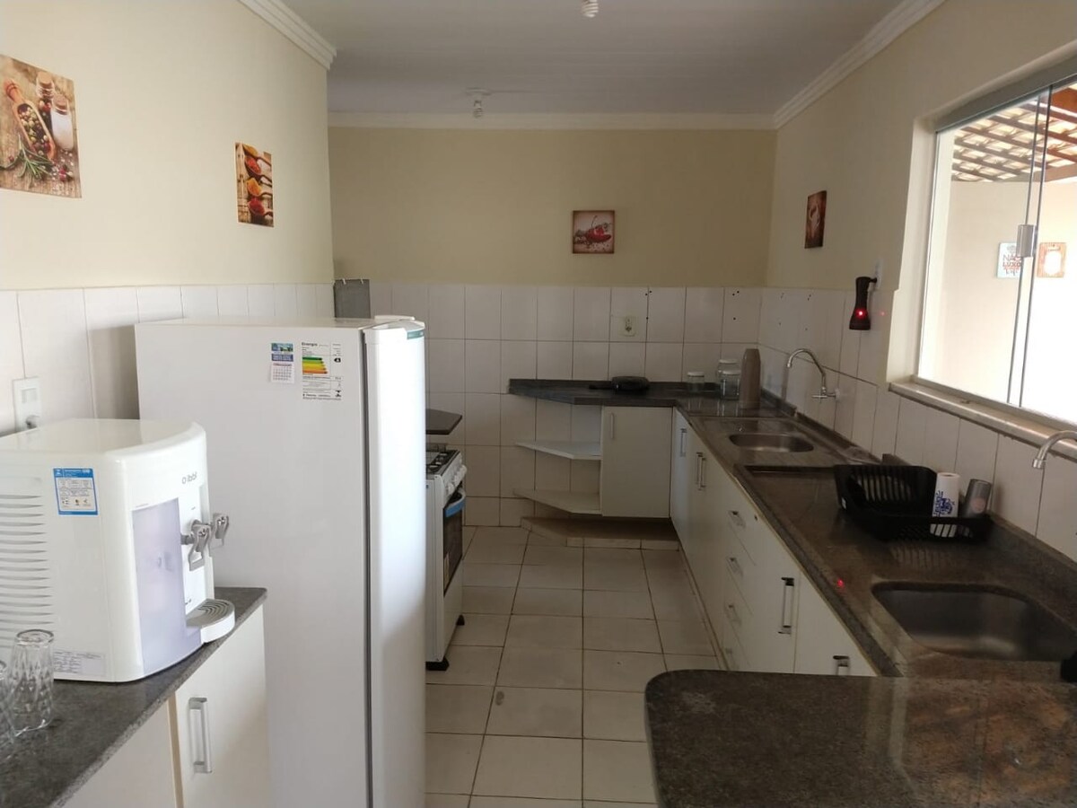 PAUNAWA: Kailangang mag-book ng kahit dalawang gabi. Pwedeng tumanggap ng hanggang anim na nasa hustong gulang at dalawang bata. May 3 kuwartong may air conditioning, dalawang suite, Wi‑Fi, lugar para sa gourmet, barbecue at bluetooth sound system, sala na may TV, kumpletong kusina, microwave, refrigerator, at coffee maker. Narito ka ng komportable, tahimik at ligtas na lugar, perpekto para sa iyong pahinga, magpahinga sa pool o mag - enjoy sa beach sa mga espesyal na sandali kasama ang iyong pamilya. Halika at maranasan ang isang piraso ng paraiso sa lahat ng kaligtasan at katahimikan na nararapat sa iyo.