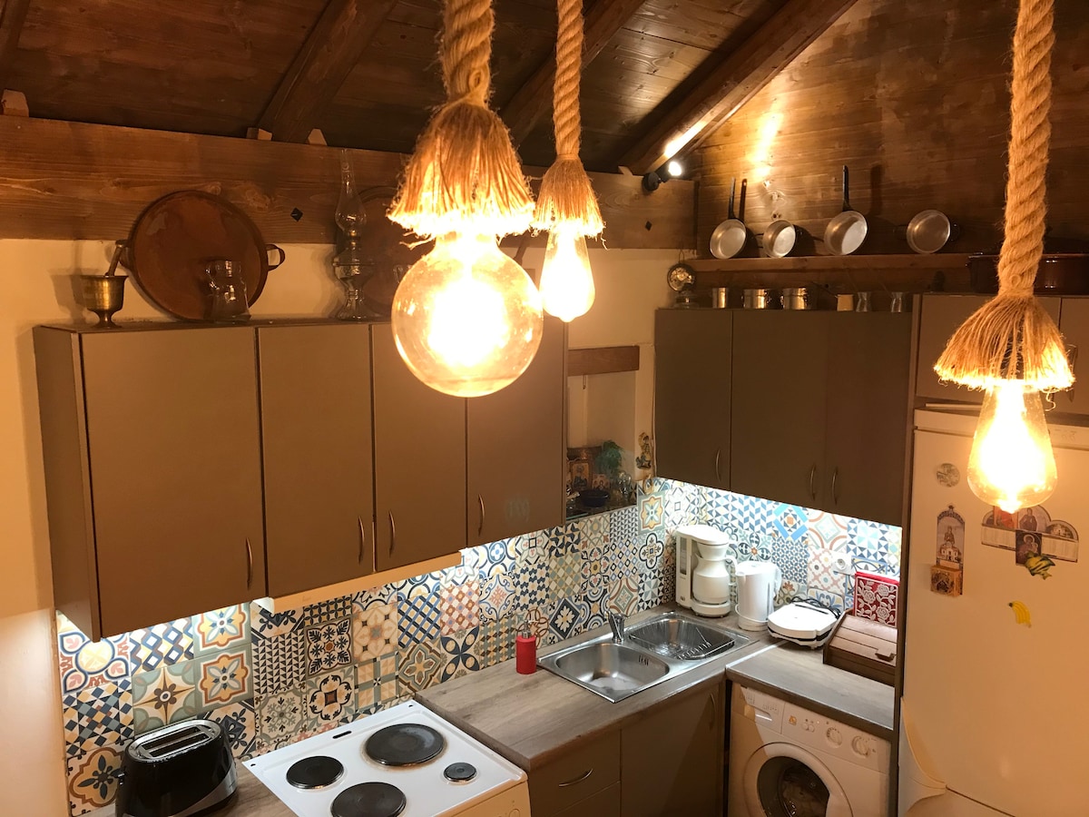 Το σπίτι βρίσκεται στο κέντρο του πανέμορφου νέου Μικρού Χωριού,πολύ κοντά στην πλατεία του χωριού και του Country Club , σε ονειρικό περιβάλλον στους πρόποδες της Χελιδόνας με θέα την Καλιακούδα και το Βελούχι. Κτισμένο με παραδοσιακή αρχιτεκτονική απο πέτρα και ξύλο. Αποτελείται απο δυο ανεξάρτητες κατοικίες μια στο ισόγειο και μια στον όροφο. Το διαμέρισμα του πρώτου ορόφου διαθέτει καθιστικό, κουζίνα ,υπνοδωμάτιο και λουτρό.