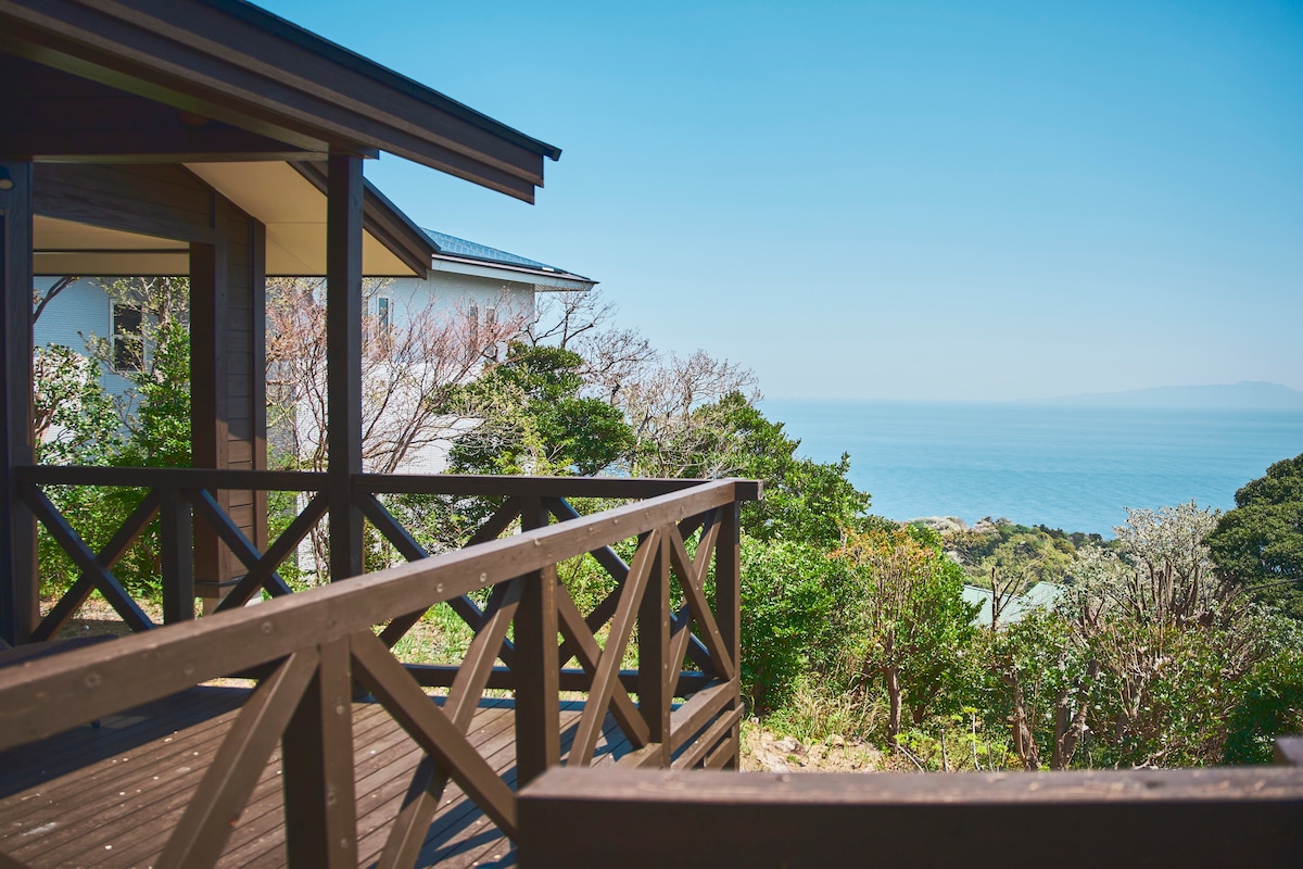 Damhin ang mga pambihirang tunog ng kalikasan sa isang cottage na may tanawin ng karagatan. May cottage sa pambansang parke ng Tanushi, na dumadaan sa power spot na Heart Cave Ryugu (modelo para sa "Ponyo" ni Ghibli), at Tanushi Beach. Habang papasok ka sa pinto sa harap ng cottage, tumatalon sa iyong mga mata ang berde ng mga puno at ang kumikinang na liwanag ng karagatan.Ang 20 - tatami mat na sala na may mataas na kisame ay may sofa, kusina, loft, at fireplace sa taglamig, at isang nakakarelaks na lugar para sa mga pamilya at kaibigan. Kapag lumabas ka mula sa bintana papunta sa terrace, makikita mo ang kalangitan at dagat na kumakalat mula sa dagat.Marangyang mararamdaman mo ang komportableng hangin at kalangitan na dahan - dahang dumadaloy sa jacuzzi at hammock swing. Mula sa terrace, umakyat ng isa pang hagdan papunta sa sky deck.May kalikasan lang hangga 't nakikita ng mata.Kumakalat ang nakamamanghang tanawin. Ang nakakarelaks na daloy ng dagat at mga bangka sa pangingisda sa Izu, maririnig mo ang tunog ng mga ibon sa sapa.Ito ay isang mahusay na detox. Pagkatapos, bumaba sa isang palapag para mag - enjoy sa uling na BBQ habang nakikinig sa babbling ng ilog sa kagubatan.Ito ay masarap, masaya, at isang mahusay na memorya. Sa gabi, nakakamangha ang mabituin na kalangitan, at kung maganda ang panahon, makikita mo ang mga bituin sa pagbaril!Masisiyahan ka sa kagandahan ng langit.