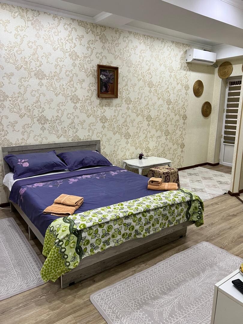 Isang apartment na may 2 kuwarto. Isang bagong piling bahay, mga panoramic na bintana at isang magandang tanawin mula sa bintana. Malinis at komportableng apartment na may bagong renovation. Mayroon ng lahat ng kailangan mo para sa komportableng pamamalagi; wifi, aircon, double bed, malalaking aparador, sofa, mesa at upuan, at refrigerator. Kusinang kumpleto sa kagamitan—puwede kang magluto. Nasa maigsing distansya ang botika, iba't ibang cafe, supermarket, at bangko. Malapit doon ay may sikat na cafe na "Jasmine", Alamedinsky market. Available ako kapag kailangan, ikinagagalak kong magpatuloy sa iyo❤️