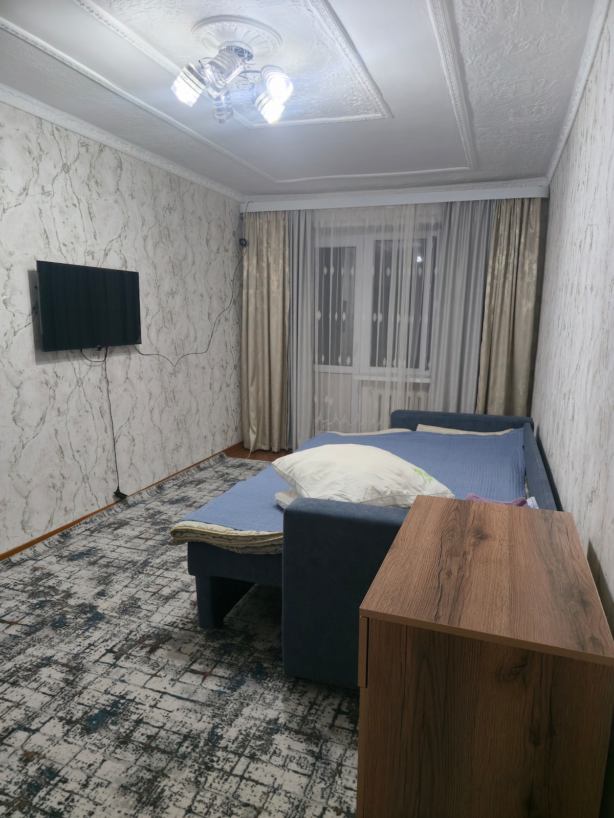 2х комнатная квартира. Новый элитный дом, панорамные окна и красивый вид из окна. Чистая и уютная квартира с новым ремонтом. Есть все необходимое для комфортного проживания; вай фай, кондиционер, двуспальная кровать, большие шкафы , диван,стол и стулья , холодильник. Полностью оборудованная кухня с посудой - можно готовить. В шаговой доступности аптеки, различные кафе, супермаркеты, банки. Рядом популярное кафе «Жасмин» , Аламединский рынок. Я всегда на связи , с удовольствием приму вас❤️