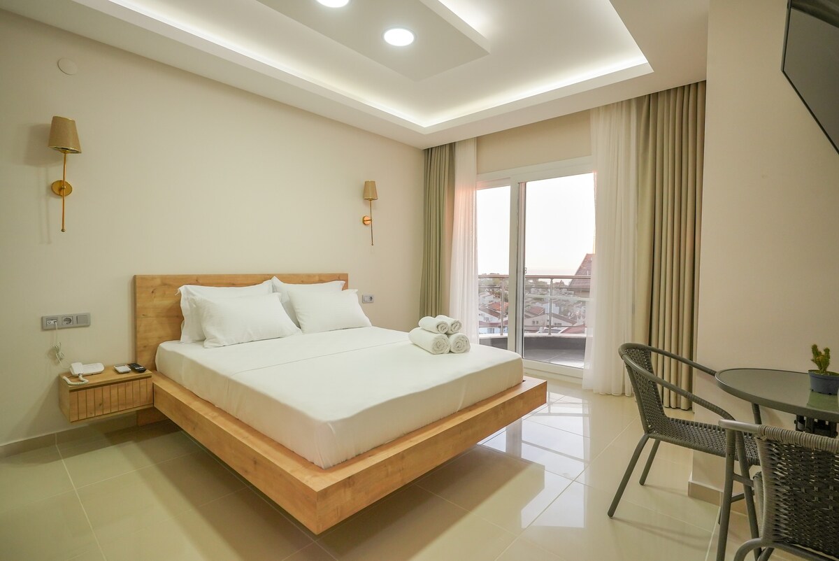 Ang Capo Calaberno Aparts ay isang kaaya - ayang pagpipilian ng tuluyan na idinisenyo para sa relaxation at kaginhawaan sa Karaburun. Ang resort ay may nakakarelaks at magiliw na front garden at mainam para sa paggugol ng mga kaaya - ayang sandali sa mapayapang kapaligiran. Ang mga kuwarto ay may mga modernong amenidad tulad ng telebisyon, Wi - Fi, air conditioning, washing machine, kusina at pribadong banyo. Nag - aalok ang mga apartment ng mga tanawin ng dagat at bundok, na nagbibigay ng perpektong lugar para sa isang mapayapang pamamalagi at nasa gitna rin ng lahat ng atraksyon ng Karaburu.
