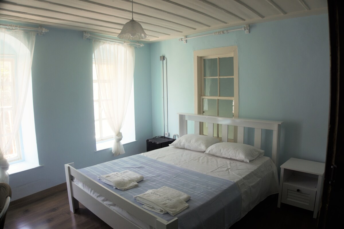 Matatagpuan ang aming mini - apartment sa gitna ng Ayvalik, dalawang minutong lakad papunta sa kapitbahayan ng Macaron at dalawang minutong lakad papunta sa dagat. May malaking moske ang Ayvalik kung saan matatanaw ang 16th street kung saan maaari mong maranasan ang kagandahan ng Ayvalik. Ang lahat ng kakailanganin mo sa panahon ng iyong bakasyon ay pinag - isipan at nalulugod sa pinakamasasarap na detalye. Ito ay isang maluwang, simple at kasiya - siyang lugar kung saan komportableng makakapamalagi ang dalawang tao. Ang apartment na ito, kung saan maaari kang manatiling komportable sa lahat ng panahon, ay maingat na inihanda upang maging iyong tahanan sa Ayvalık.