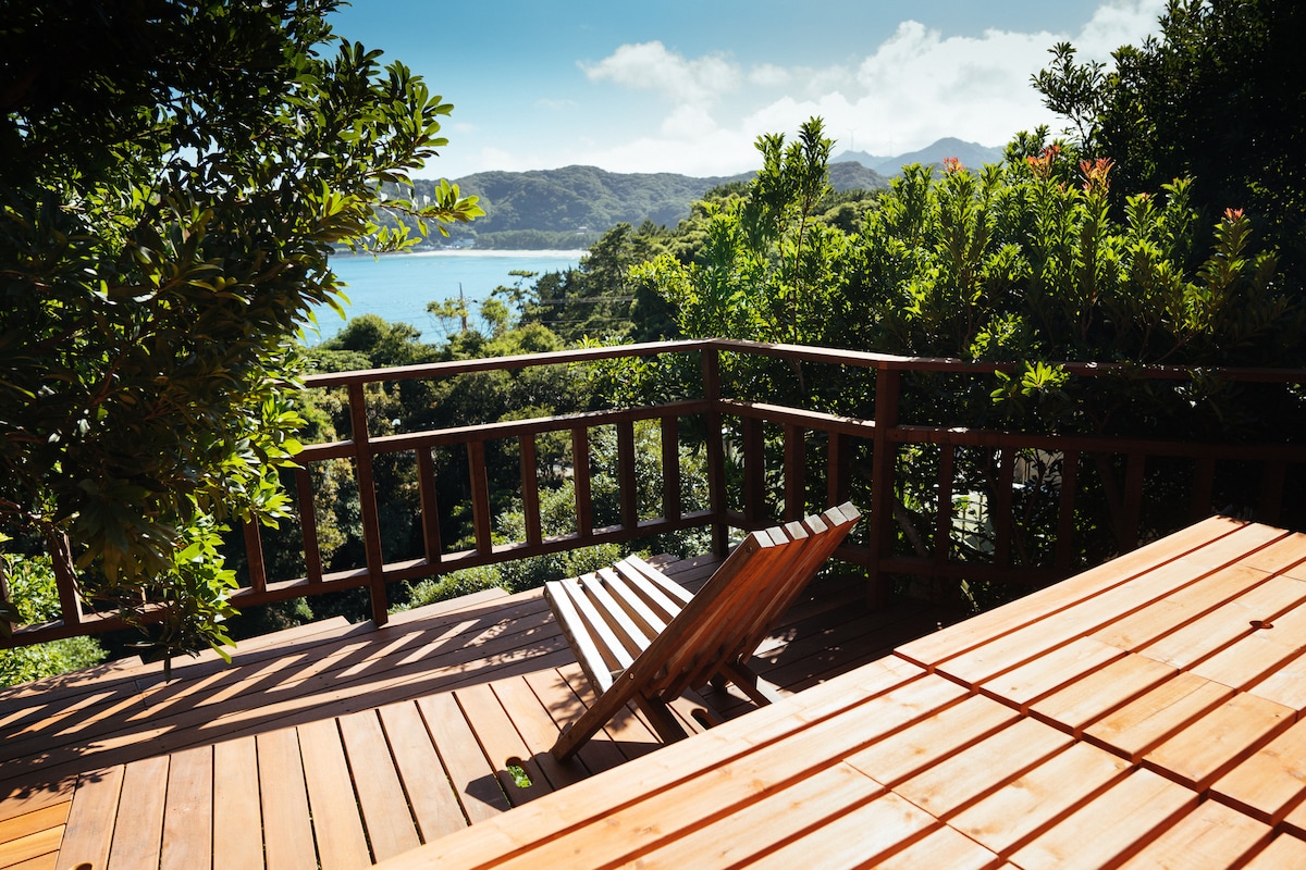 ※Tandaang magiging reserbasyon ito ng 2 tao※ * Magpadala ng mensahe sa amin nang maaga kung nagbu - book ka para sa 1 tao * Tandaang walang pick - up o drop - off Malapit lang ang bahay sa baybayin mula sa lungsod Cabin na may dalawang palapag na estilo ng kahoy Ang ikalawang palapag ay may malawak na tanawin ng karagatan at magandang tanawin ng Ozako Island, ang susunod na isla. Mapapanood mo rin ang mga ibon mula sa kuwarto at hardin. Kaunti lang ang mga pribadong bahay at tao sa paligid, kaya makikita mo ang mga bihirang ibon! Makikita ang mga balyena sa taglamig at mga dolphin mula sa kuwarto sa tag - init. Limang minutong lakad din ito papunta sa Nagataro Pond kung saan puwede kang mag - enjoy sa paglangoy sa dagat. Puwede ring magrenta ng mga kagamitan para sa BBQ. Magrelaks kasama ang iyong pamilya o mga kaibigan sa mapayapang lugar na matutuluyan na ito.