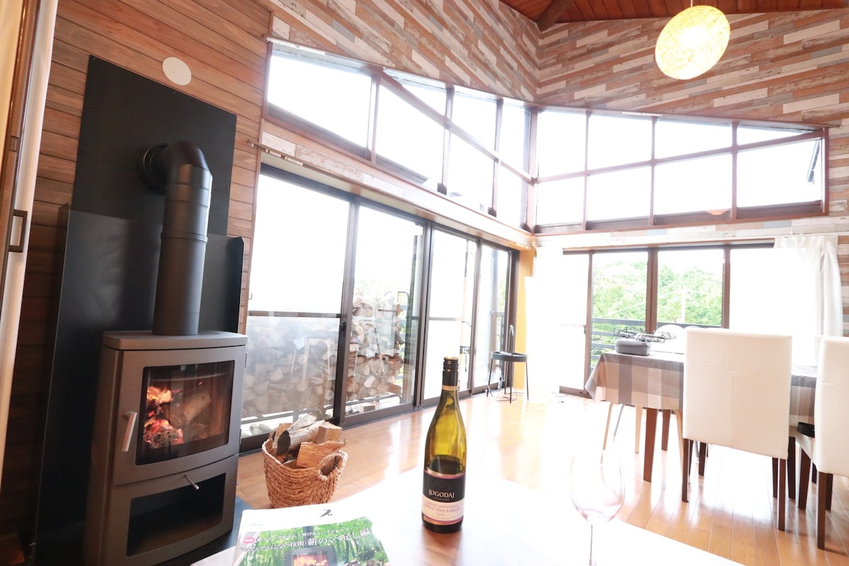 富士山絶景180度大開放窓&New屋根付きBBQ場&映画&薪ストーブ/定員8名 三島・熱海・伊豆