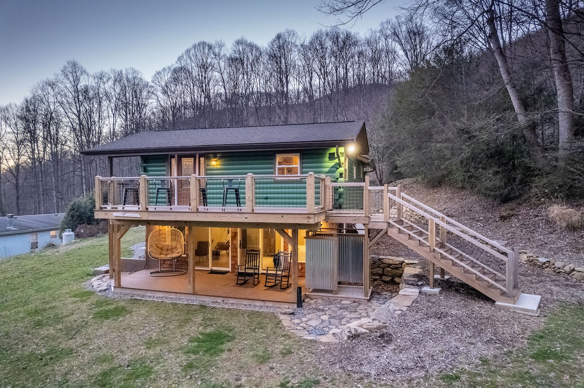Ang Cozy Creek Cabin ay isang kaakit - akit na Log Cabin malapit sa Smoky Mountain National Park. Tangkilikin ang tahimik na tunog ng creek habang inilalagay ang iyong mga paa sa hot tub. Mag - snuggle sa tabi ng fire pit at mag - enjoy sa mga inihaw na marshmallow habang kinukuha ang mga tunog ng kalikasan. Matatagpuan sa gitna na may pakiramdam ng kalikasan sa paligid mo, ngunit malapit sa downtown na may mga restawran at brewery na malapit sa iyo. 9.1 milya lang papunta sa WCU Cook nang komportable mula sa bahay na may kumpletong kusina at mga grocery store sa may aspalto na kalsada papunta sa cabin.