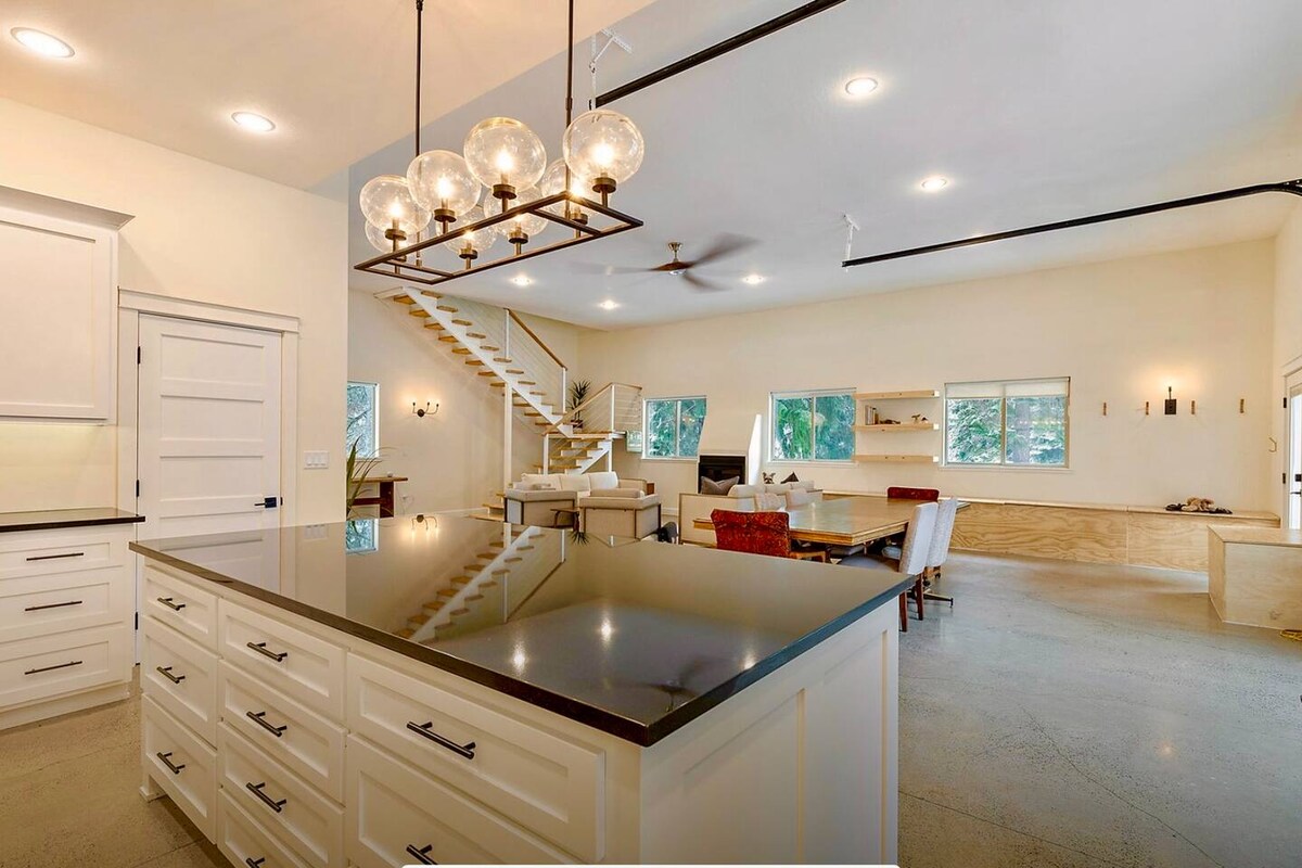 The Aloha House is located just above the University and only 1.5 miles from downtown Ashland. Nestled up a hill in the forest, you'll be transported to your own little private resort-like getaway with stunning views, architectural design that brings the outdoors in, and ample space for dining and entertaining poolside. The property consists of two separate studios (both included) connected by a unique outdoor living space with a seasonal pool, spa, outdoor shower, bar & BBQ, and more!