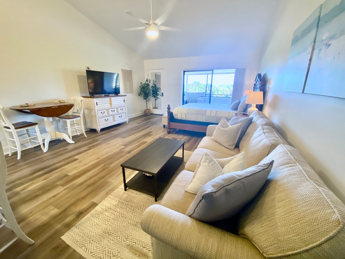 OCEANFRONT na may tanawin na parang milyong dolyar! May 2 higaan at 1 banyo ang unit na ito na nakaayos bilang malaking studio (850 sqft). Wifi at 65" na Smart TV, workspace na may magandang tanawin. May komportableng queen bed at TV ang nakahiwalay na kuwarto. Sunroom na may nakakamanghang tanawin ng beach. Ang kusina ay puno ng mga pangunahing kailangan sa pagluluto. Kasama rin ang mga beach towel, upuan, at payong sa beach. Washer/Dryer sa unit. Maginhawang 5 hanggang 10 minutong biyahe papunta sa Mayo Clinic.