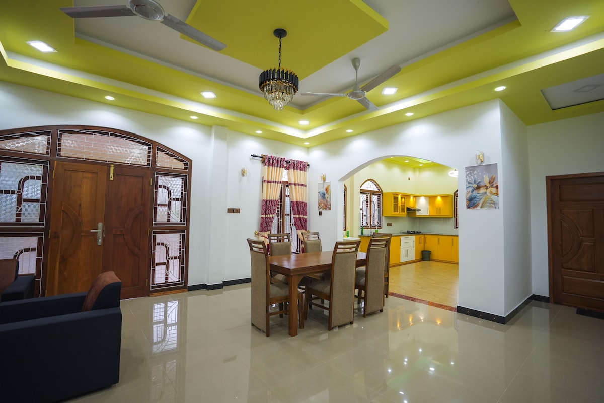 Isang mapayapang bakasyunan na 10 minuto lang mula sa bayan ng Jaffna at 7 minuto mula sa iconic na Nallur Kandasamy Kovil, ang aming singlestory tiledroof home ay nag - aalok ng kaginhawaan at kaginhawaan. Nagtatampok ang property ng apat na naka - air condition na double bedroom at dalawang banyo, kasama ang kusinang kumpleto sa kagamitan kung saan puwede kang maghanda ng sarili mong pagkain o paunang ayusin ang aming lutuin para masiyahan sa mga tunay na pagkaing Jaffna kasama ang iyong mga probisyon. Available din ang hiwalay na tuluyan ng driver na may nakakonektang banyo para sa dagdag na kaginhawaan.