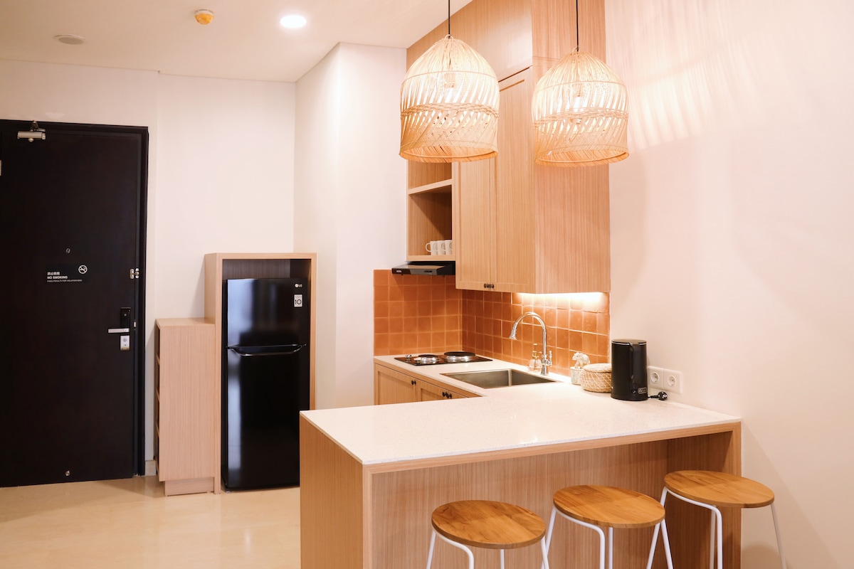 Relax and enjoy comfort of a home sweet home. Fully furnished 1 bedroom apartment that provides all the guest needs away from home. Located in strategic location in CBD Bintaro Jaya and comes with complete condominium facilities, within walking distance to Malls, Hospitals, Restaurants and many more. We provides free Wi-Fi and complete amenities such as refrigerator, kitchen and dining utensils plus water dispenser to make your stay feels like home sweet home.