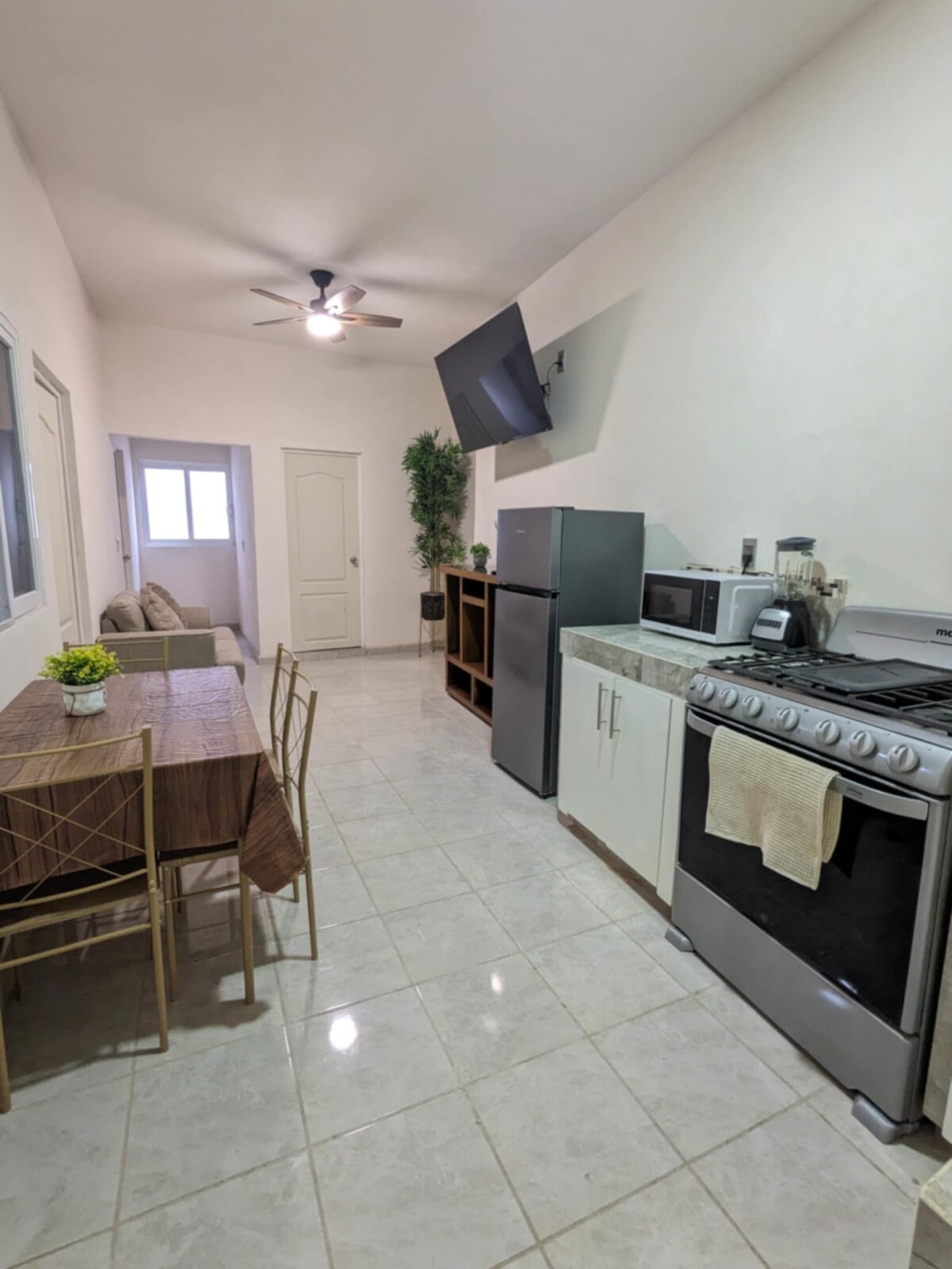 ✨ Apartamento amplia en Calvillo, Pueblo Mágico ✨ Magkaroon ng natatanging karanasan sa modernong apartment na ito na may 2 silid - tulugan na perpekto para sa mga pamilya o grupo. Masiyahan sa 85 pulgadang screen para masiyahan sa iyong serye, malawak na balkonahe na may tanawin, at malinis, ligtas, at napakalawak na kapaligiran. Matatagpuan sa gitna ng Calvillo, Aguascalientes, malapit ka sa gastronomy, tradisyon, at atraksyong panturista nito. Mainam na magpahinga at tuklasin ang kagandahan ng magandang Magic Town na ito.