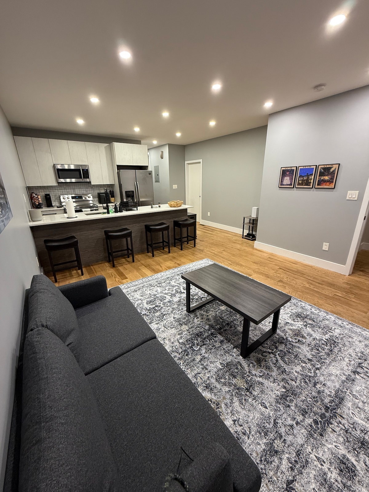 Its coziness will make you feel at home the second you step in. This cute ground floor 280 sq ft Tiny Guest Suite is Fully furnished and nicely decorated - it comes with anything you can possibly imagine. It consist of 1 bedroom 1 bathroom & a kitchen/dining/living room area Rooms' sizes: Bedroom: 10ft x 7 1/2ft LR kitchen DR area: 19ft x 10ft Bath: 40" x 80" Given how close it is from everything - It is perfect for guests who plan on commuting to the city by train or move around by Uber.