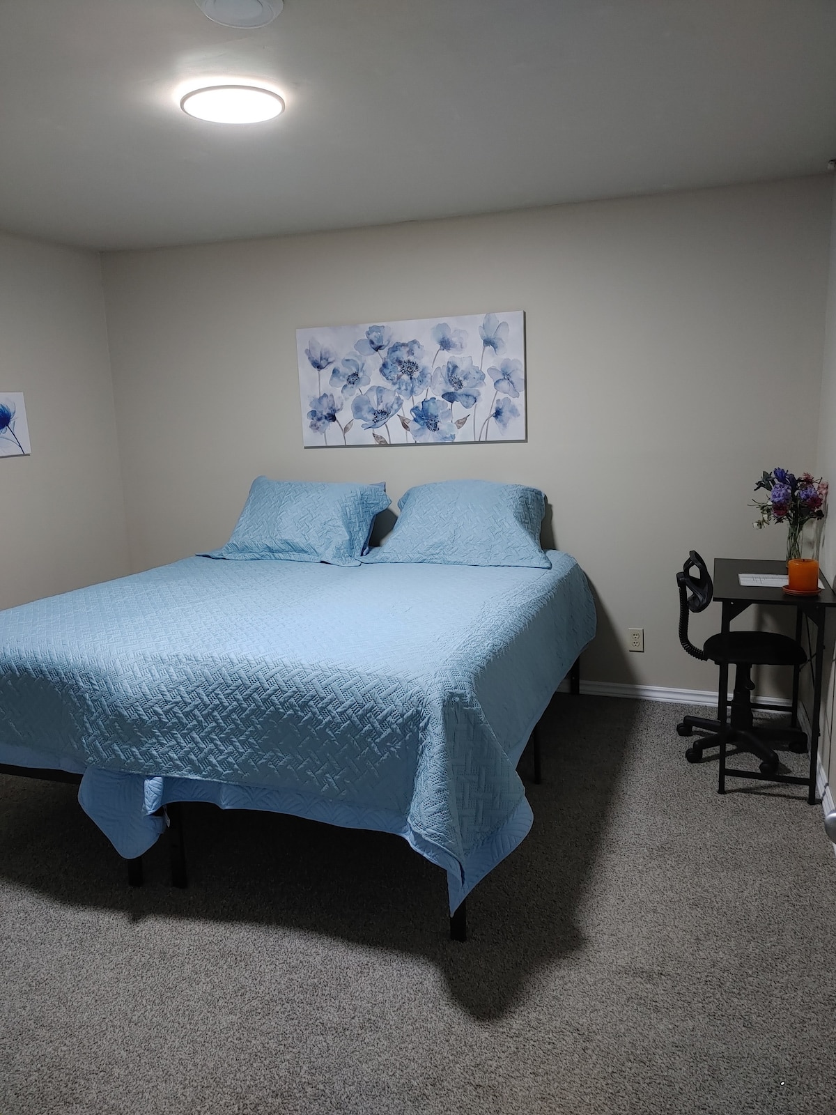 Ang natatanging lugar na ito ay may sariling estilo. Rock n roll decorfully tapos hiwalay na pasukan sa maganda renovated basement apartment. I - enjoy ang ginhawa ng mga pinainit na sahig . Napakaraming natural na liwanag. Kumpletong kusina na may mga kagamitan sa pagluluto. 3 pirasong banyo kasama ang kanyang mga lababo. Dalawang silid - tulugan (reyna). Naglalaro ng baraha , board game , libro na babasahin . Malapit sa mga daanan ng snowmobile at gas station !!! Walang Alagang Hayop pls , Walang Paninigarilyo sa gusali.