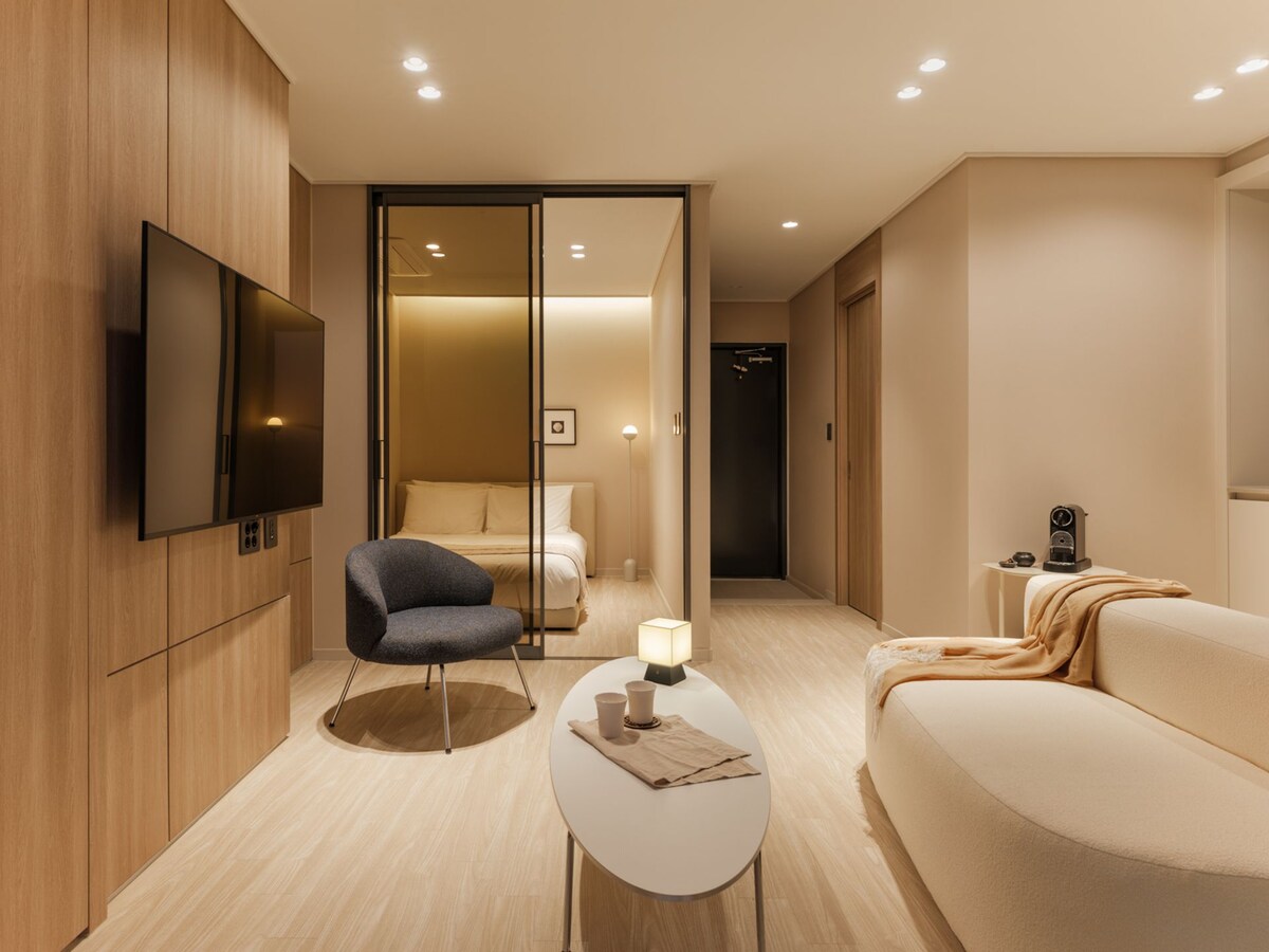 Ito ang Residence Hotel sa sentro ng Sokcho. "Kung gusto mong maging mas komportable ang biyahe mo sa Sokcho, siguraduhing pumunta sa Trangs House. ^^*" Mainit at komportableng sapin ng gansa, malaki at maluwang na higaan... At mga amenidad na parang hotel at mainit na tsaa ang inihahanda. Puwedeng mag‑self‑cater. Sokcho Fisheries Tourism Market Food Tour//Gatbae, Abai Village, Chilsung Shipyard sa loob ng 5 minutong lakad//Daepo Port, Sokcho Beach sa loob ng 5 minutong biyahe sa kotse//Self-catering full-option residence// Underground na paradahan, mekanikal na paradahan (libre) (Pampublikong paradahan sa harap ng resort na may bayad na 6,000 KRW kada araw) Mga pasilidad sa resort (tindahan, atbp.) Address: 267, Cheongchohoban-ro, Sokcho-si, Gangwon-do Lake at City No. 309 Impormasyon ng buwis sa pagpaparehistro Inisyung lugar; Gangwon-do, Sokcho-si Uri ng Permit; Negosyong Tuluyan Numero ng Permit: 2025-00018