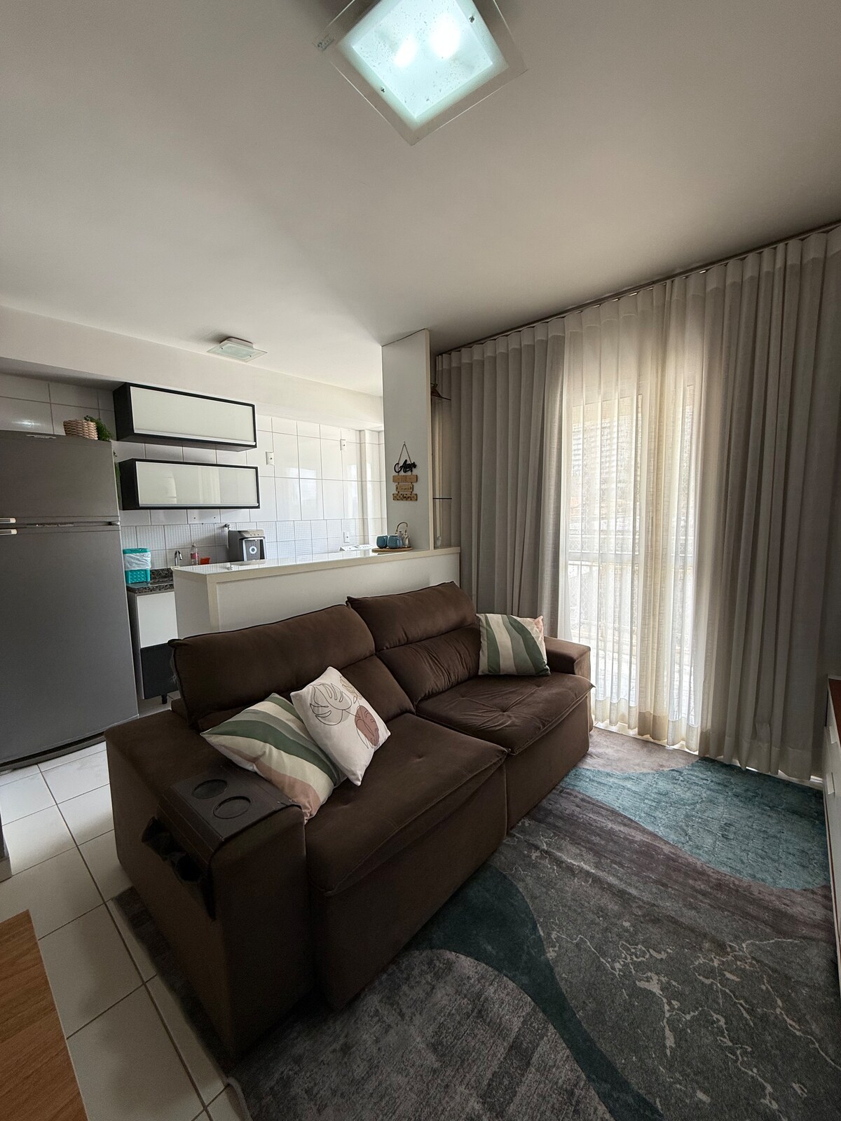 Welcome sa moderno at kumpletong single room! Malaki at maaliwalas na kuwarto. May pribadong banyo ito na may nakapaloob na kabinet. Tunay na home theater na may 70-inch TV sa sala. eksklusibong ilaw. apartment na wala pang 1.4 km ang layo sa Buriti shopping. Malapit sa mga bar, restawran, panaderya, supermarket. Kumpletong kusina. Labahan gamit ang washer/dryer. Ang kaibahan ay ang paglilibang: mag‑enjoy sa nakakapreskong pinainitang swimming pool sa terrace ng gusali. 24 na oras na lobby Saklaw na garahe sa ground floor.