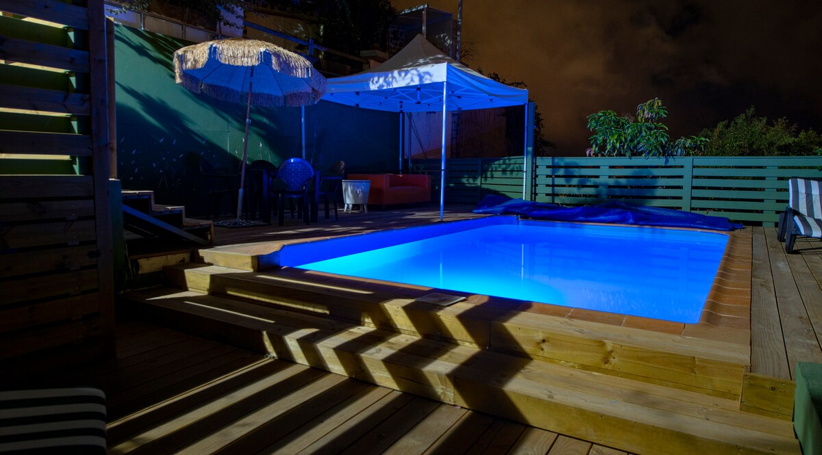 2 - bedroom loft (75m2), hardin (150m2), may bubong na patyo, na napapalibutan ng kalikasan, ng protektadong tanawin ng Bandama. Kabuuang kapayapaan at kaginhawaan, 12 minuto lamang ang layo mula sa lungsod at sa beach. Mainam para sa mga mag - asawa o pamilya na bumibiyahe nang may kasamang 1 -2 anak. Magrelaks at magkulay - kayumanggi habang nakikinig sa mga tunog ng mga ibon. O gamitin ito bilang base para tuklasin ang iba pang bahagi ng isla. Madali at libreng paradahan sa kalye sa tabi ng property. 3 minuto lang ang layo ng mga tindahan, restawran, parmasya, at pampublikong sasakyan.