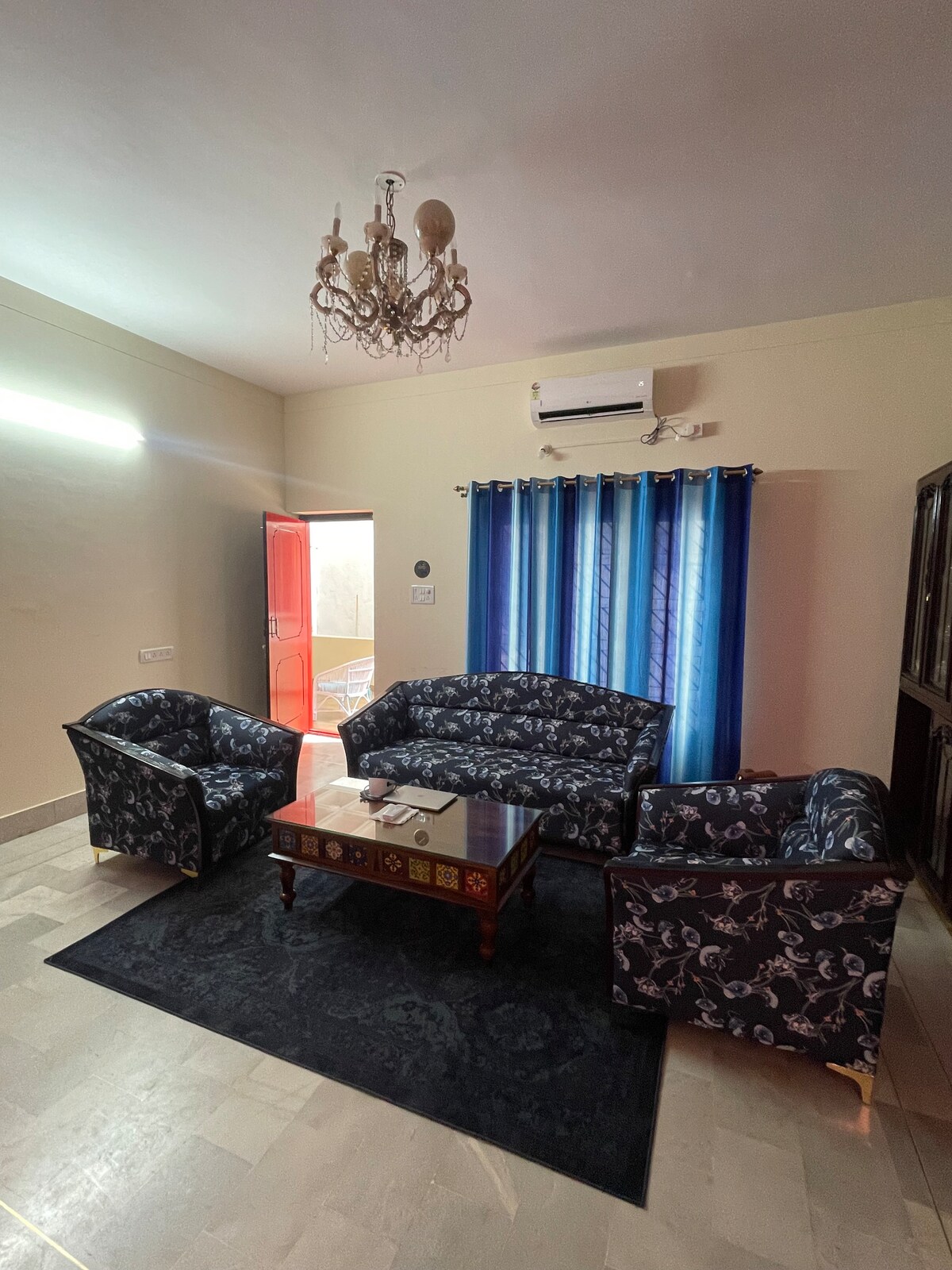 Maligayang pagdating sa aming bagong na - renovate, maluwang na 2BHK flat, na perpekto para sa mga mag - asawa at pamilya na naghahanap ng kaginhawaan at kaginhawaan. Ipinagmamalaki ng bawat kuwarto ang mga queen bed at malambot na orthopedic na kutson para sa maayos na pagtulog sa gabi. Magrelaks sa malaking sala na may 43 pulgadang Smart TV, mabilis na WiFi at 24 na oras na backup ng kuryente. May dalawang malinis na banyo na may mga pangunahing kailangan. Kasama sa kumpletong kusina ang mga pangunahing sangkap, de - kalidad na kasangkapan, at crockery para sa iyong mga paglalakbay sa pagluluto.