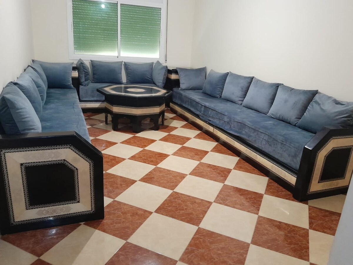Maluwang at maliwanag na apartment – 3rd floor na walang elevator Napakalinis, tahimik at kumpleto ang kagamitan, nag - aalok ang maaraw na apartment na ito ng lahat ng kaginhawaan na kailangan mo: air conditioning, balkonahe, fiber optic Wi - Fi, smart TV na may IPTV. Mainam para sa isang kaaya - aya, tahimik at konektadong pamamalagi. Atensyon para SA mga mag - asawa: Alinsunod sa batas ng Moroccan, ang mga mag - asawa lang ang puwedeng mag - book (kailangan ng katibayan).