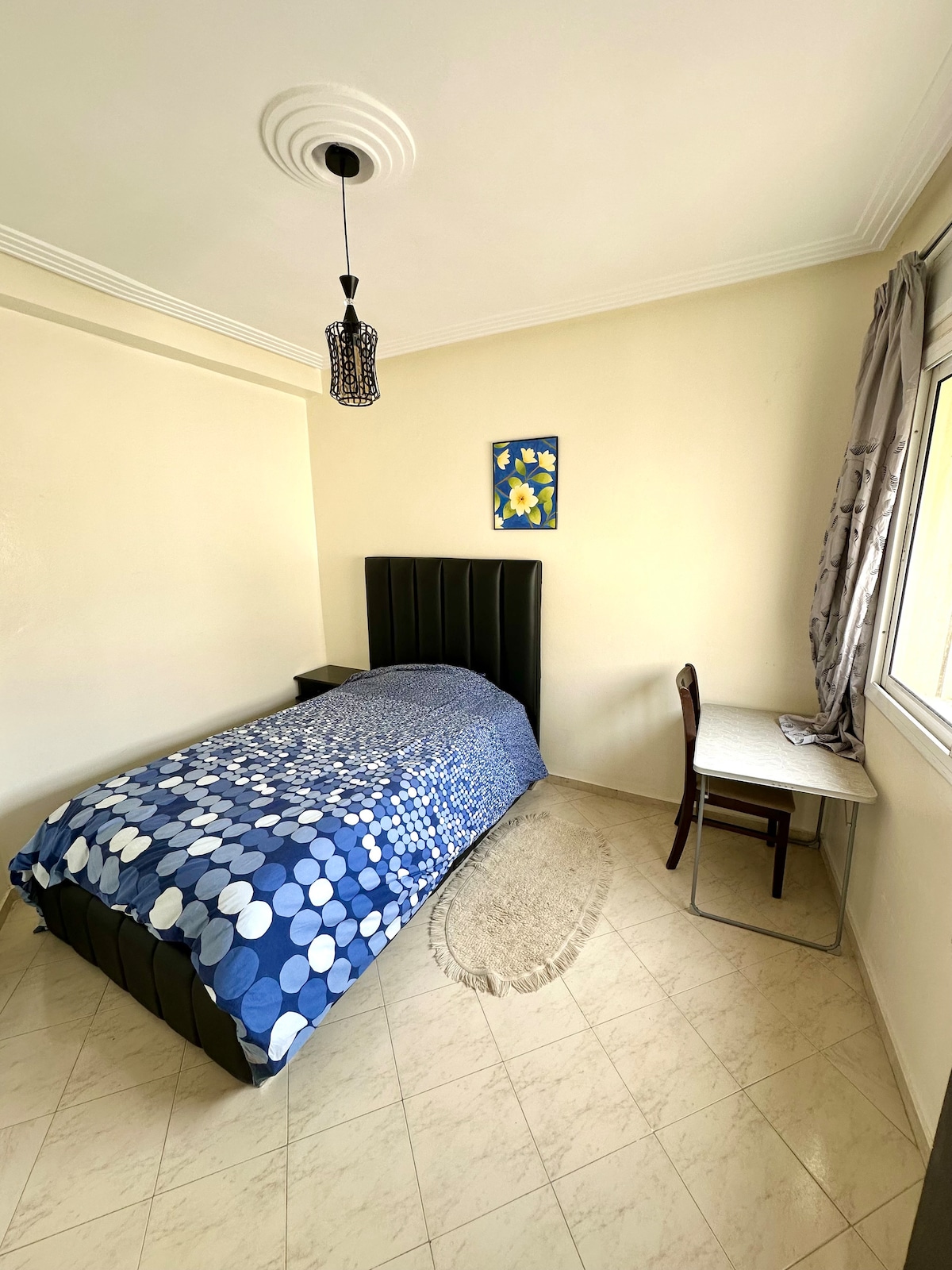 Profitez d'un séjour en famille inoubliable dans ce logement chic à Tanger . Idéalement situé à proximité de l'hôtel Farah,et au coeur de la zone Ghandouri à Tanger, cet appartement moderne offre une vue imprenable sur la mer et se trouve à quelques pas de nombreux cafés et restaurants animés. À l'intérieur, vous découvrirez un salon confortable pouvant accueillir jusqu'à 5 personnes, 2 chambres spacieuses, une salle de bain, une cuisine entièrement équipée et deux balcons pour admirer la vue.